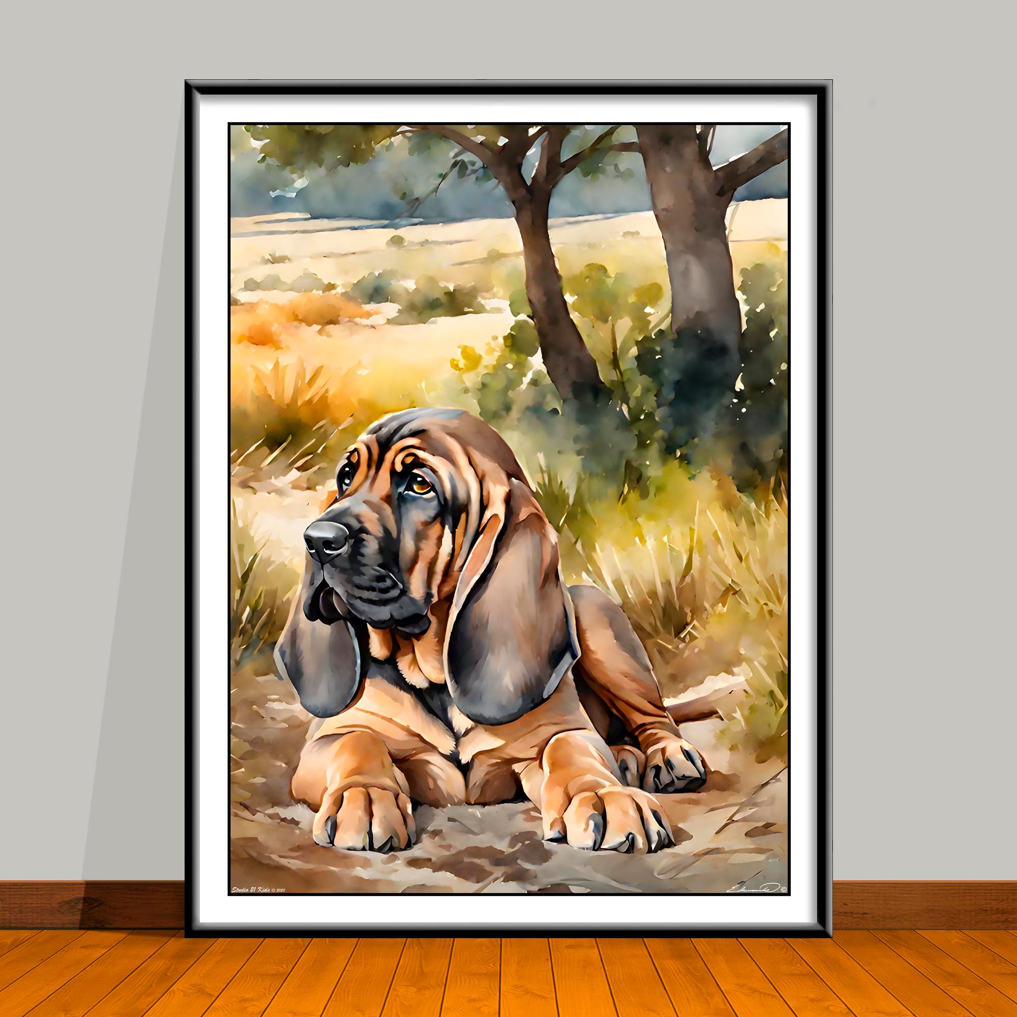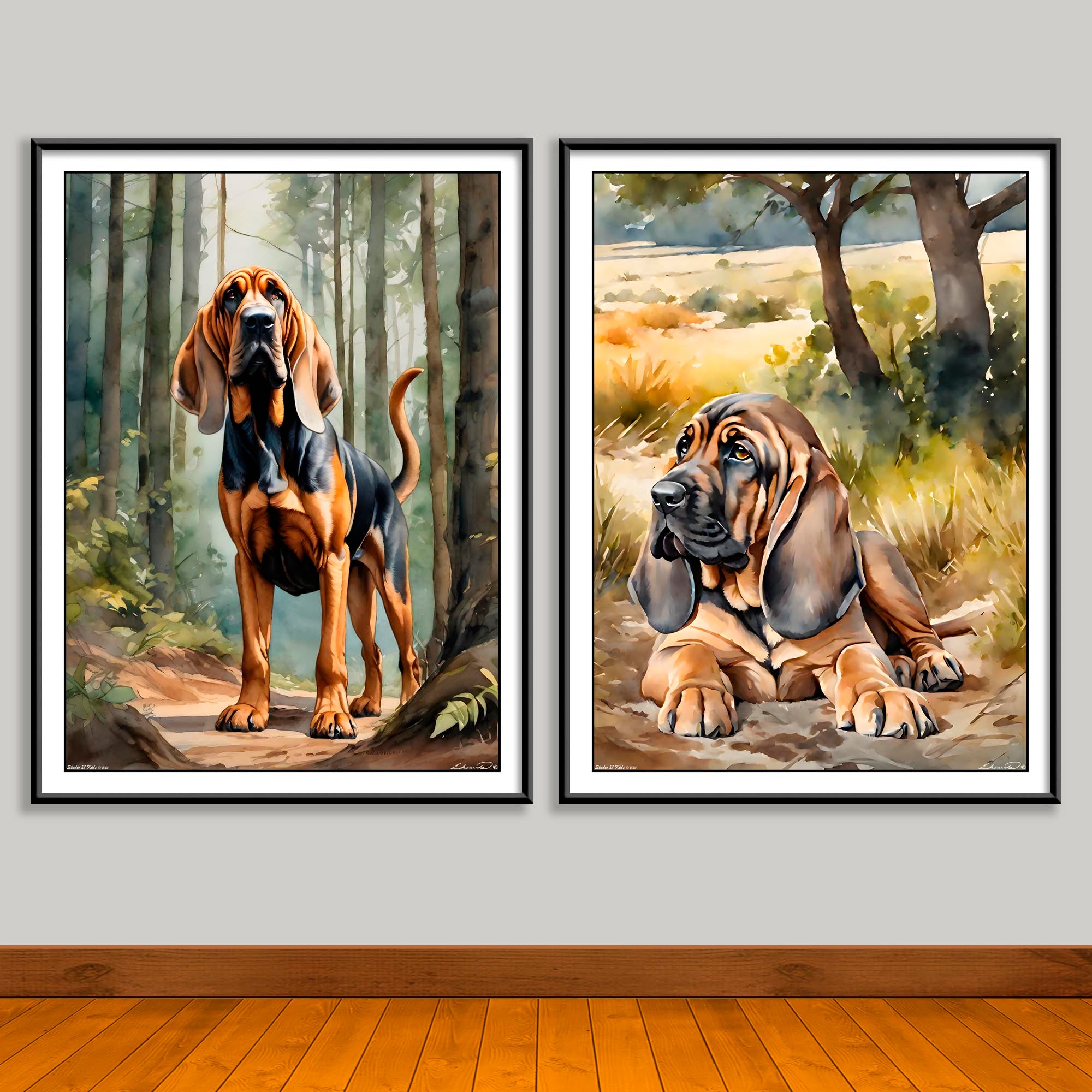 Bloodhound Watercolor Art Prints — Puppy, Adult, or Matching Set