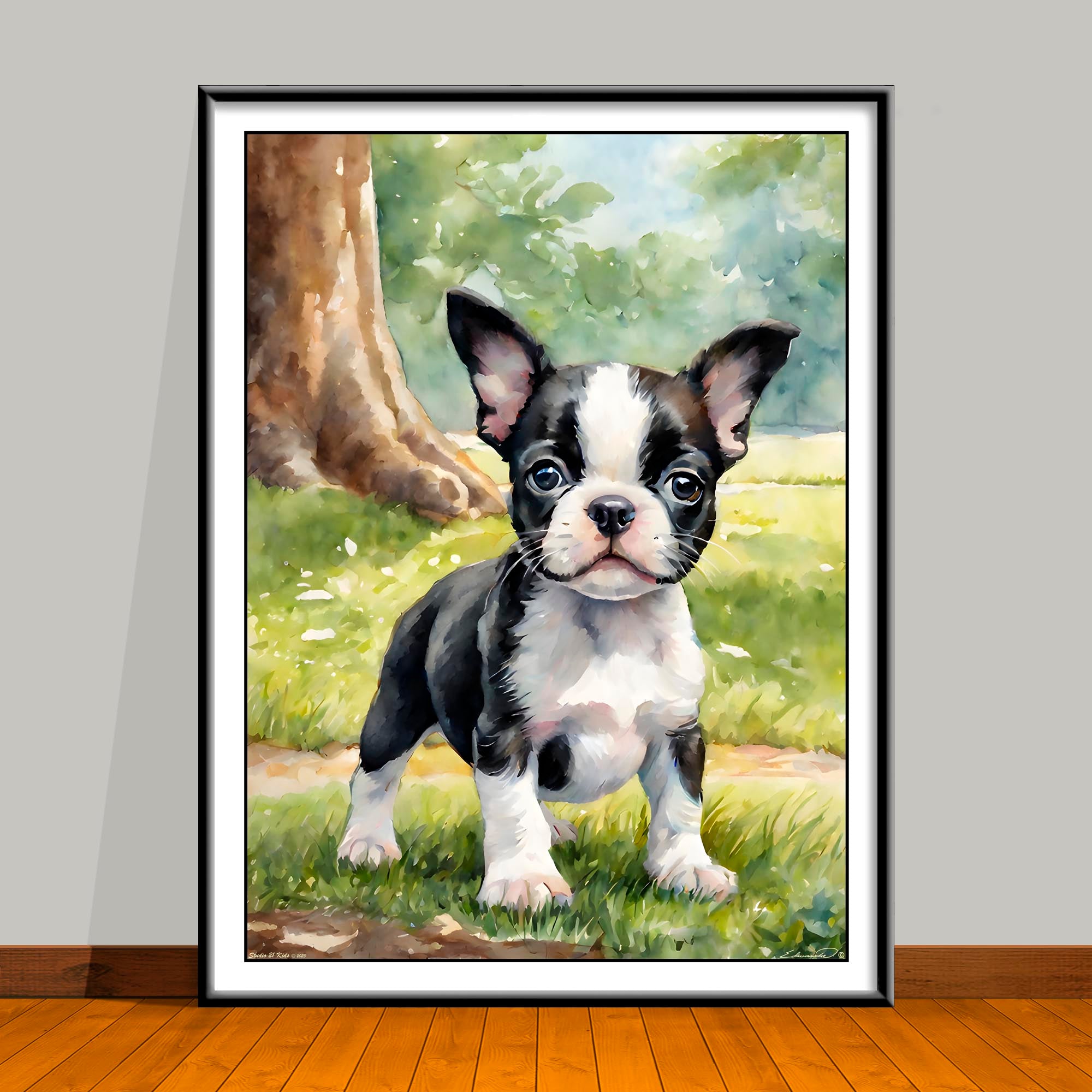 Boston Terrier Watercolor Art Prints — Puppy, Adult, or Matching Set