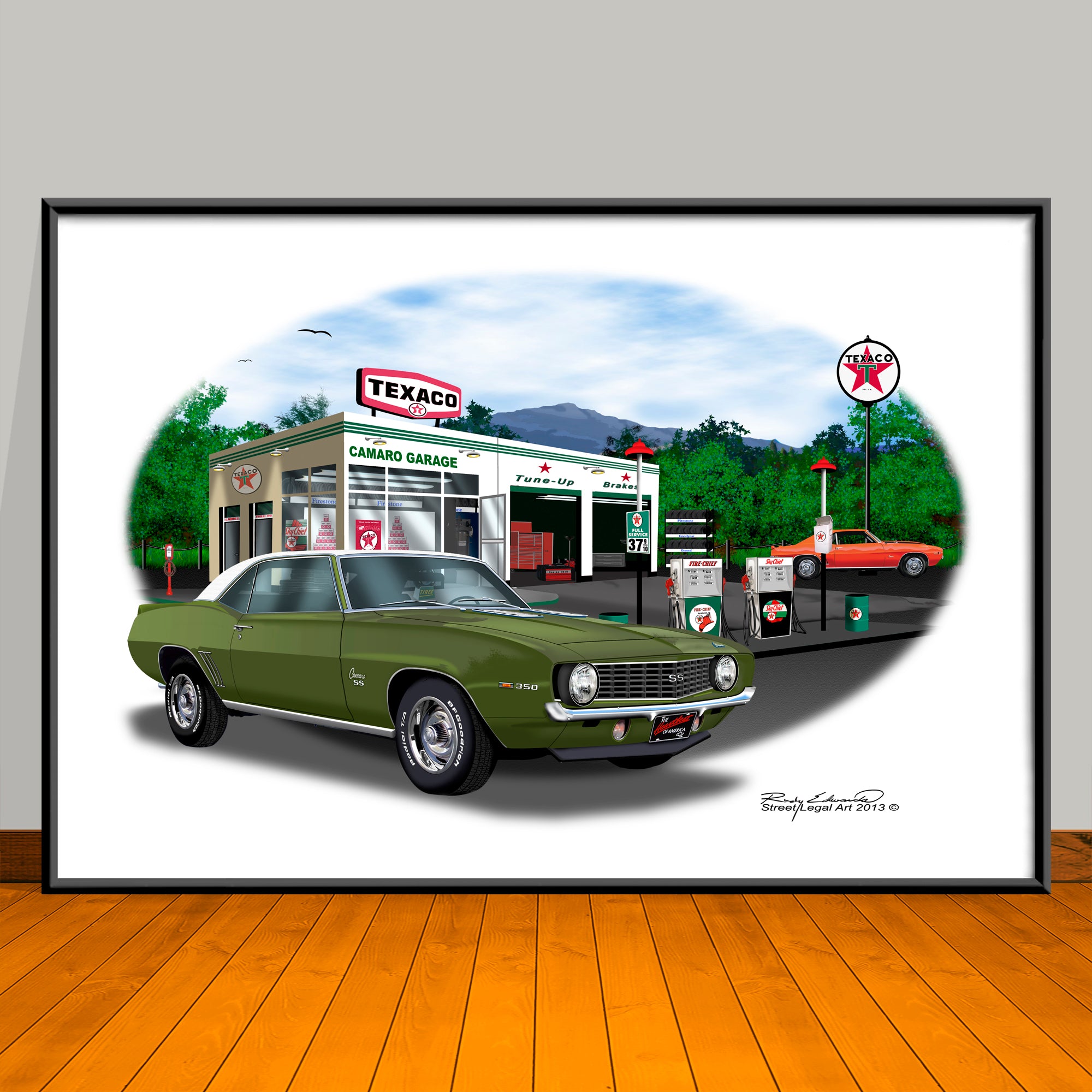 1969 Chevrolet Camaro SS 350 Muscle Car Art Print Vinyl Top Options 13" X 19" UNFRAMED