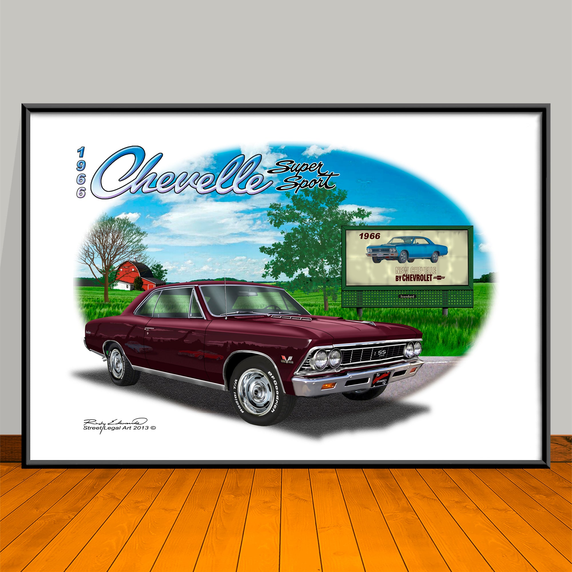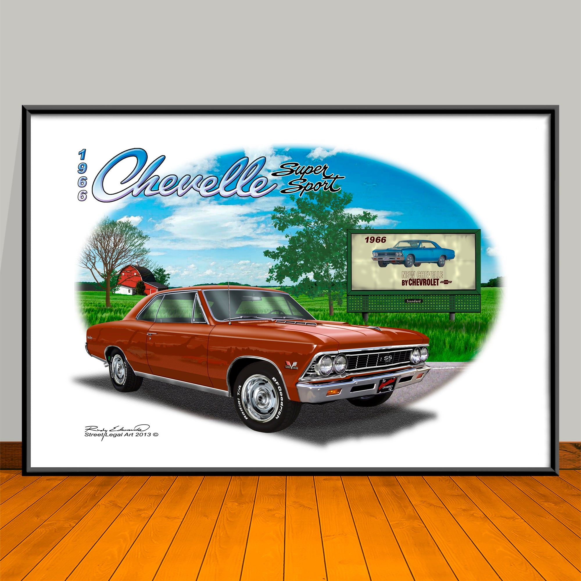 1966 Chevelle SS Muscle Car Art Print - 13" X 19" UNFRAMED