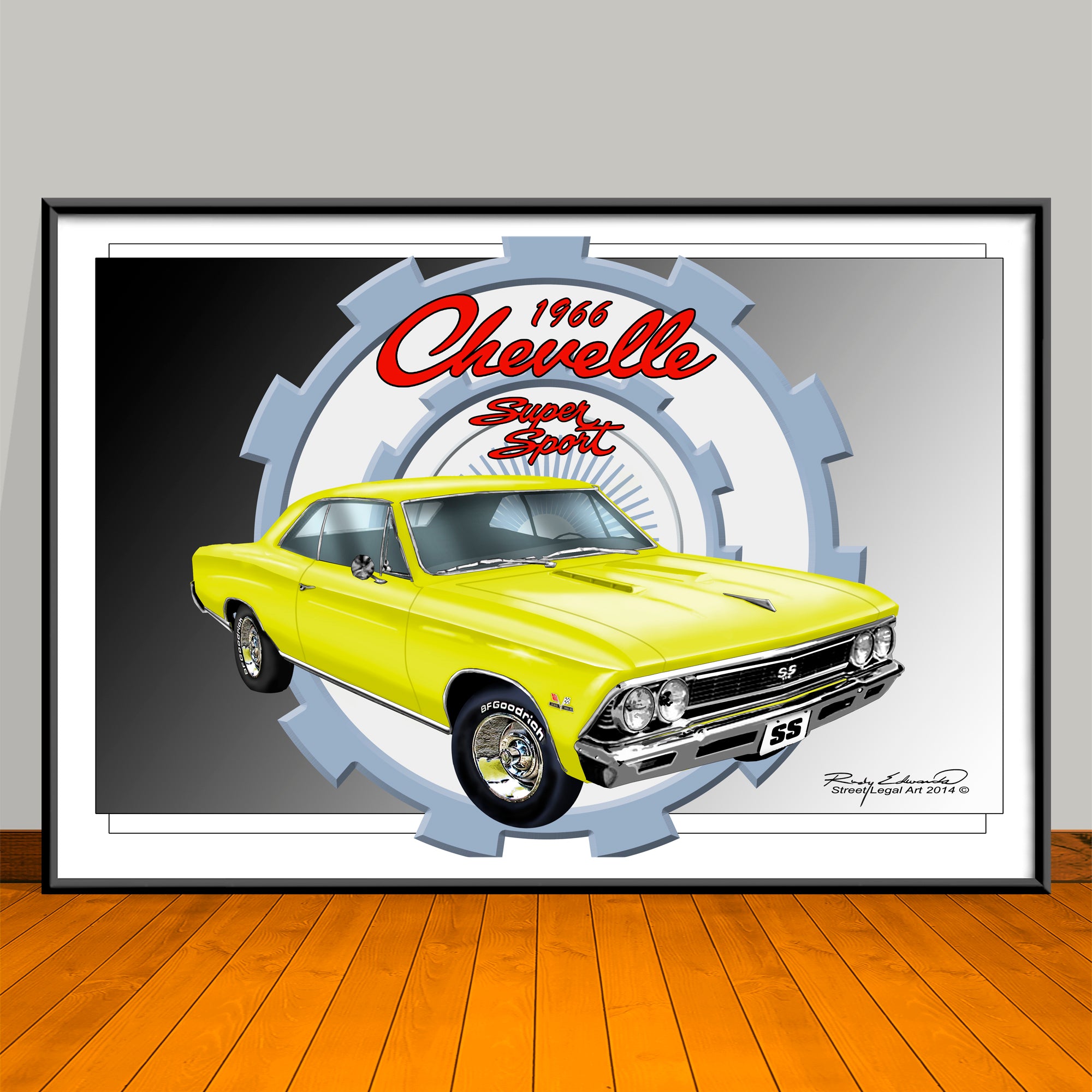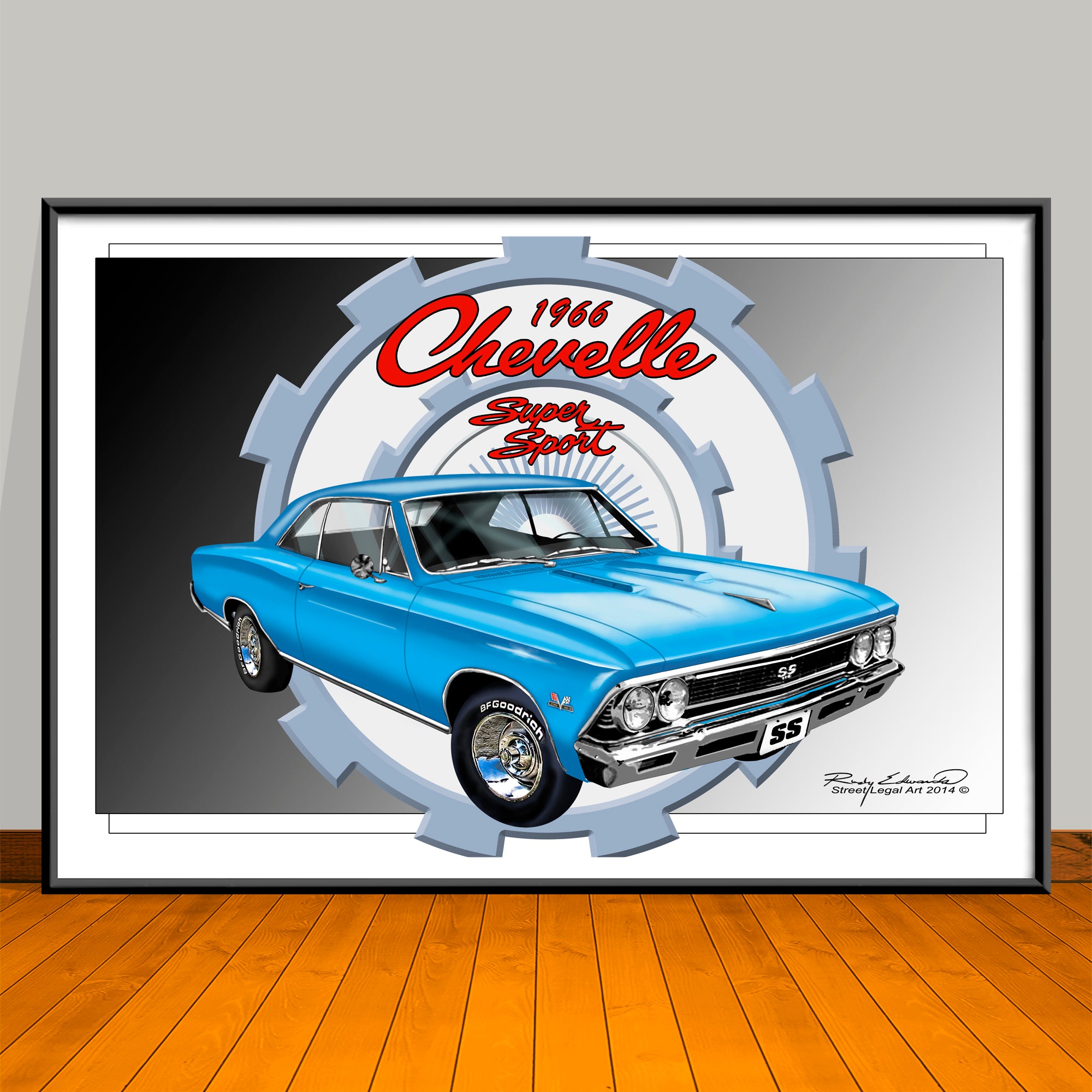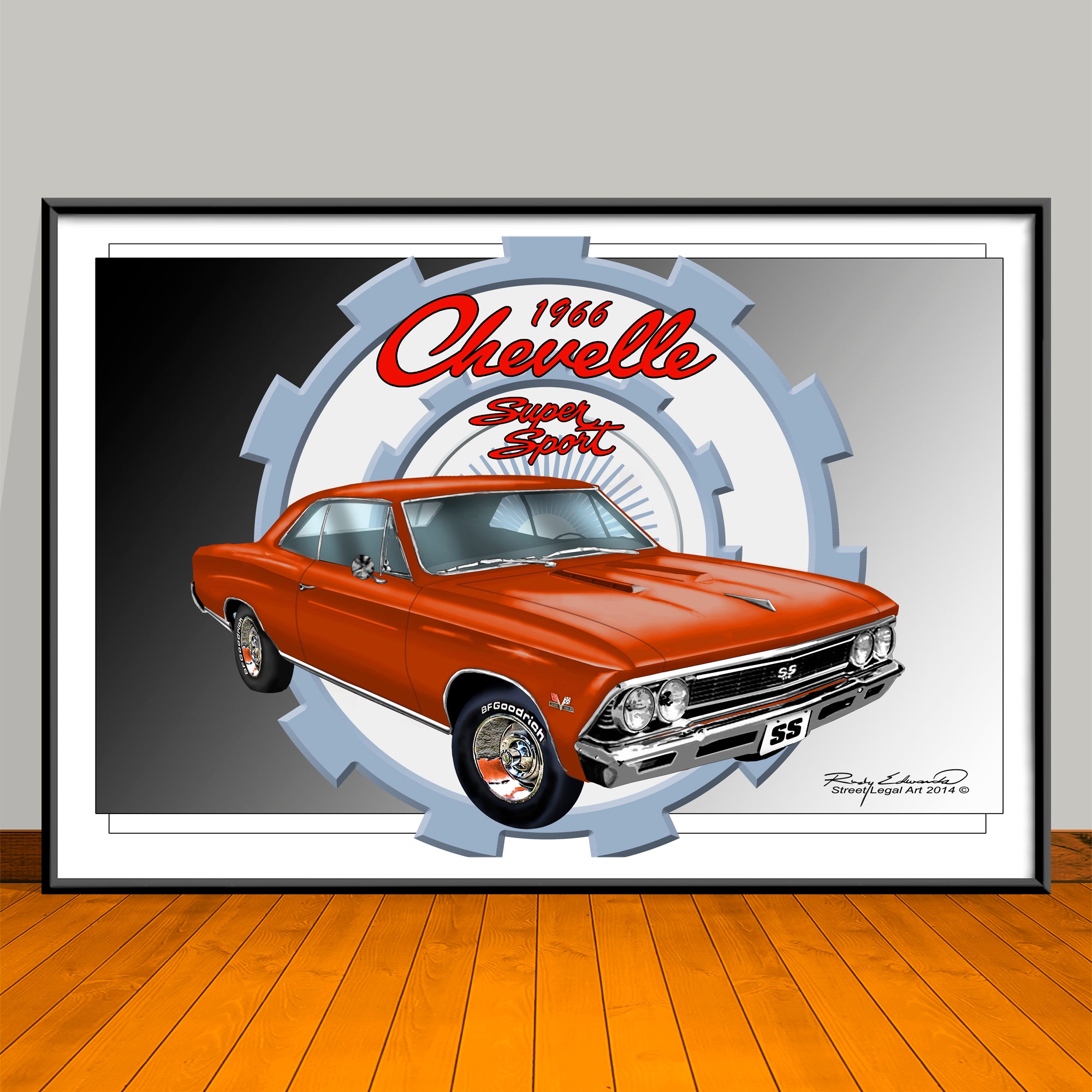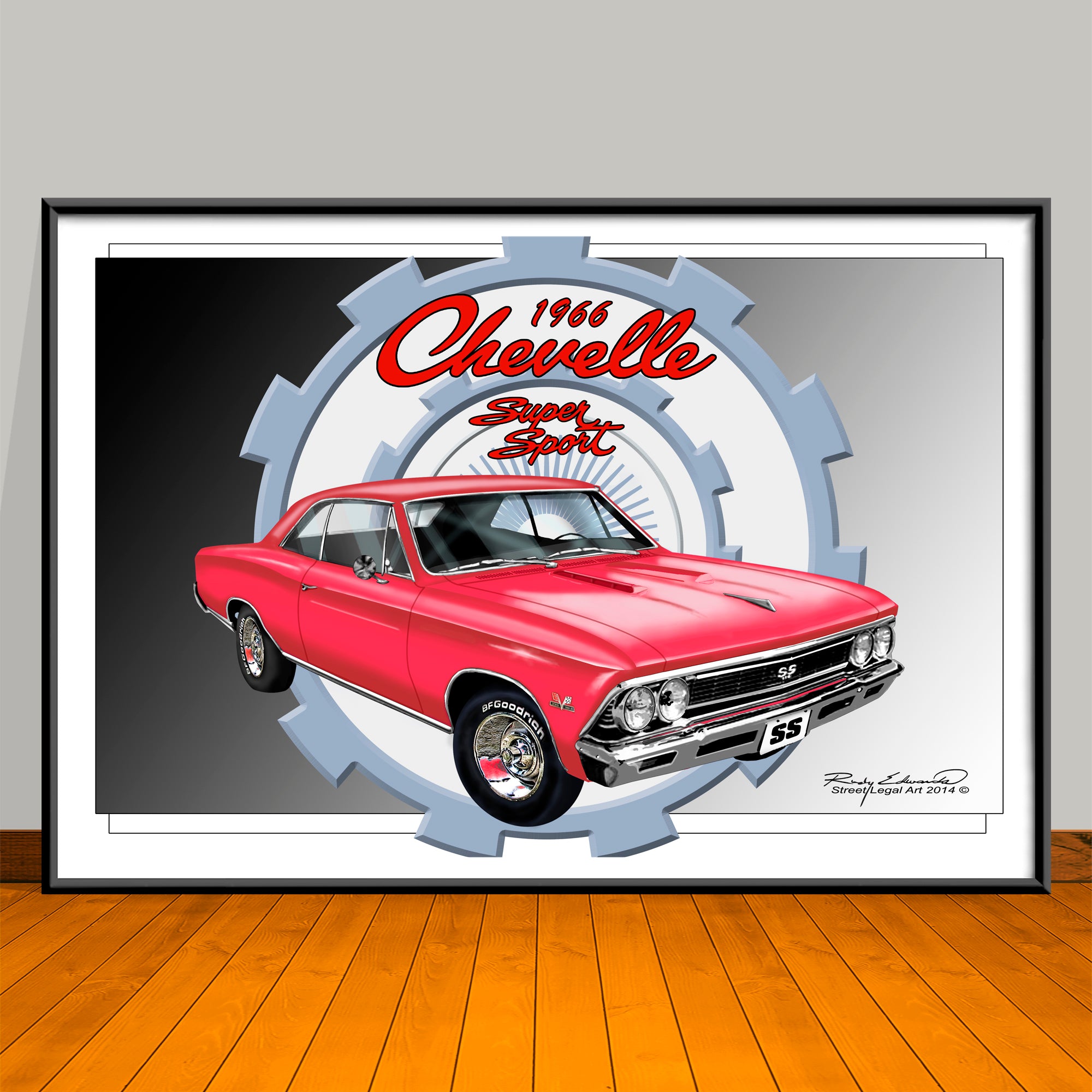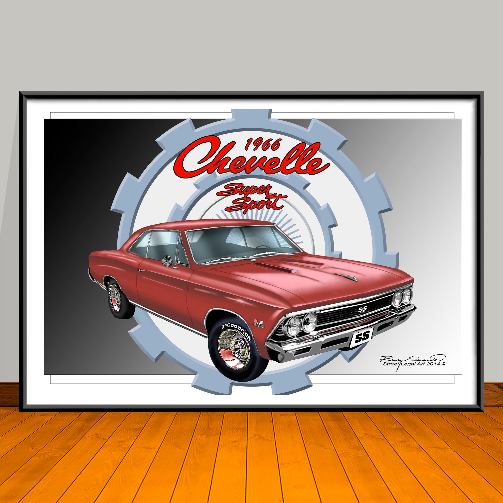 1966 Chevrolet Chevelle SS Gear Muscle Car Art Print - 13" X 19" UNFRAMED