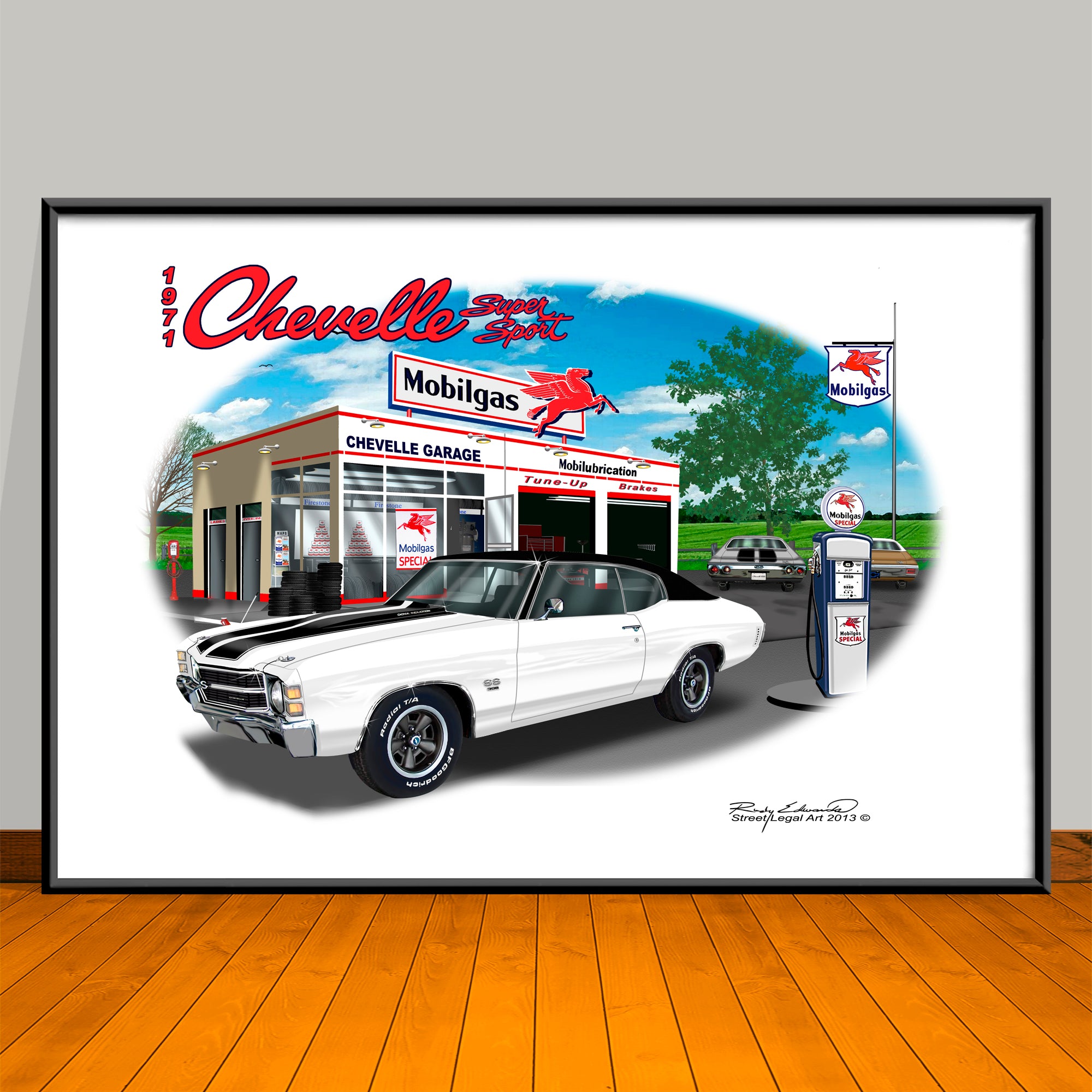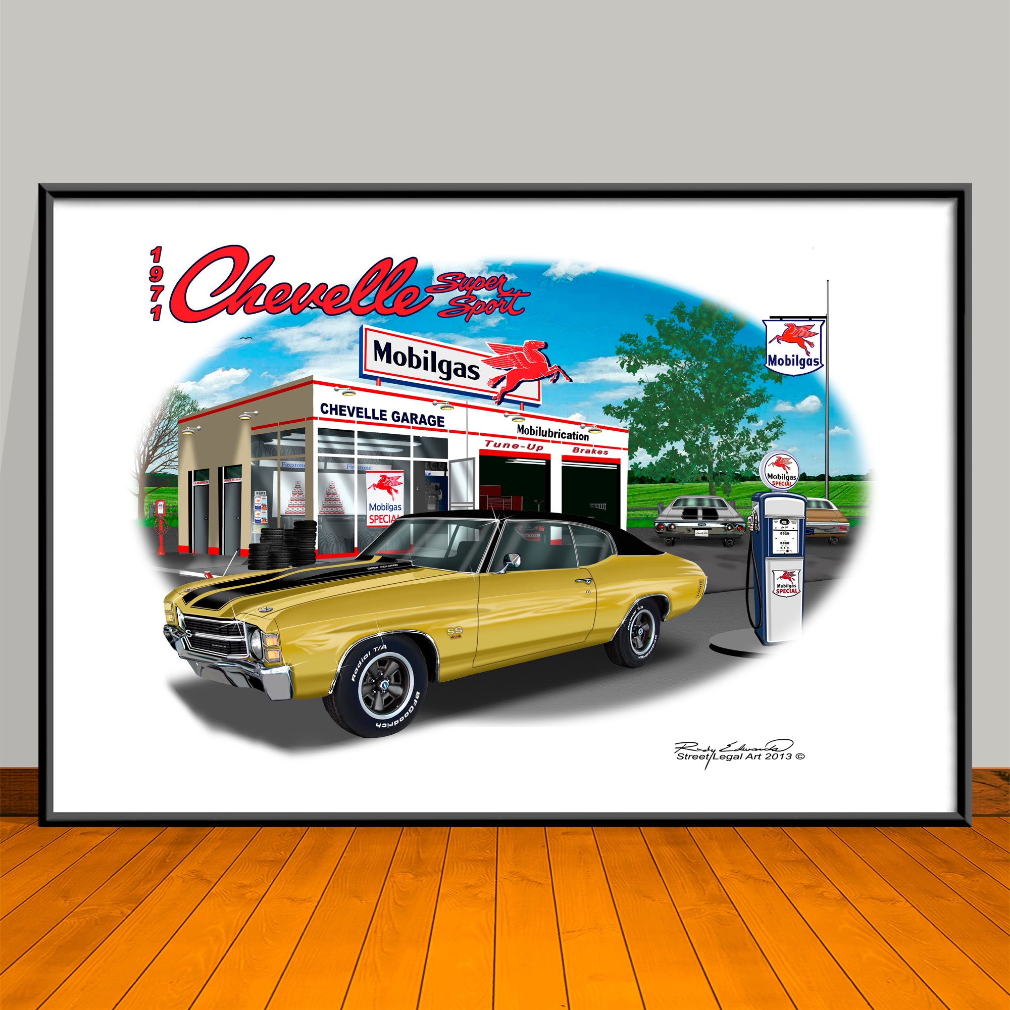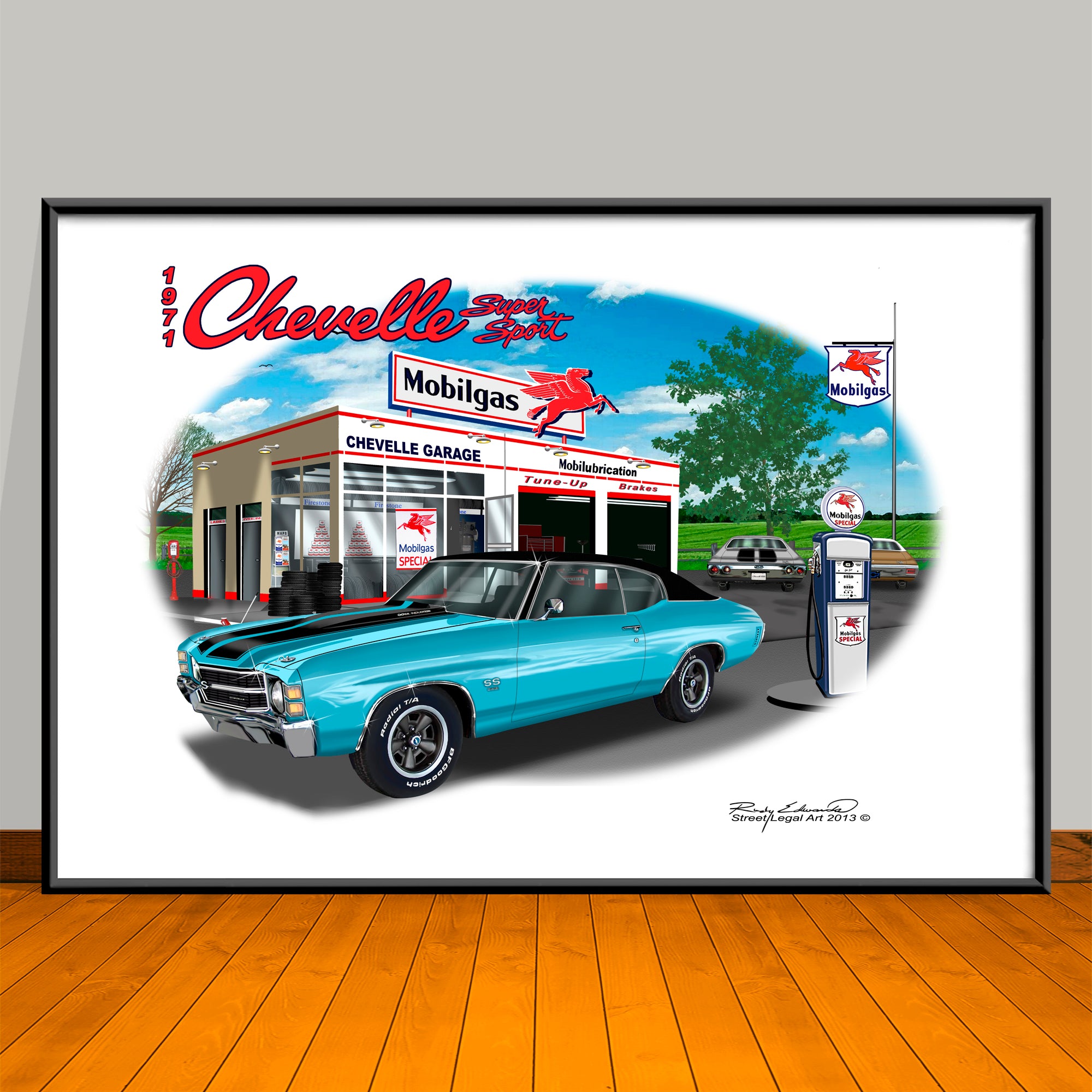 1971 Chevelle Malibu SS Stripe & Top Option Muscle Car Art Print - 13" X 19" UNFRAMED