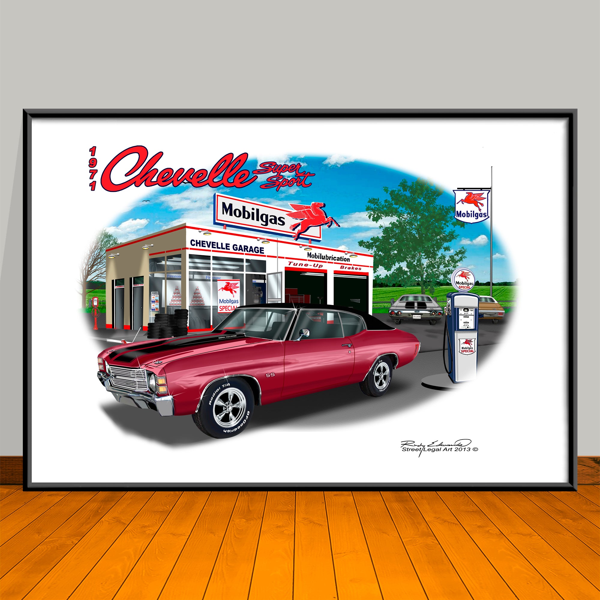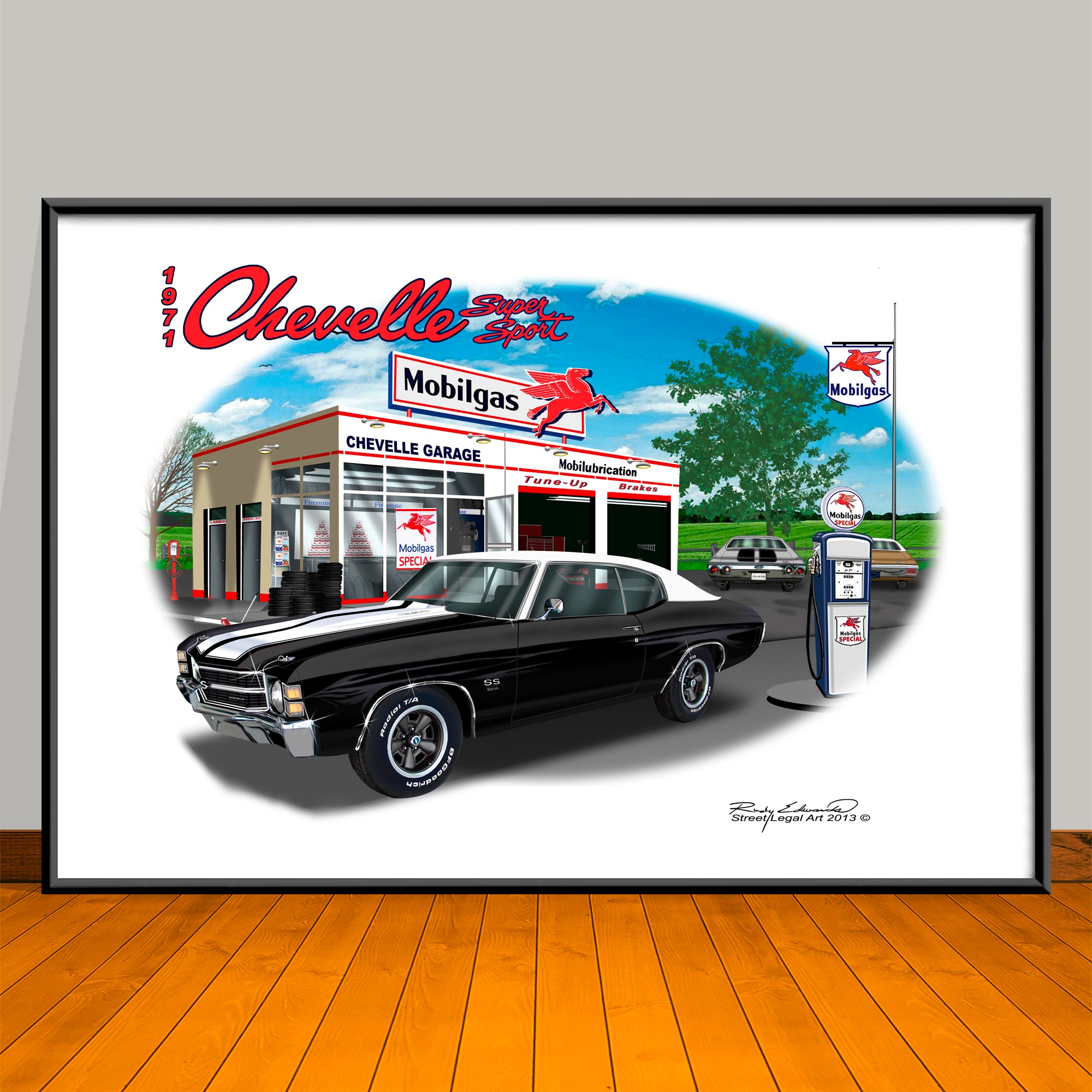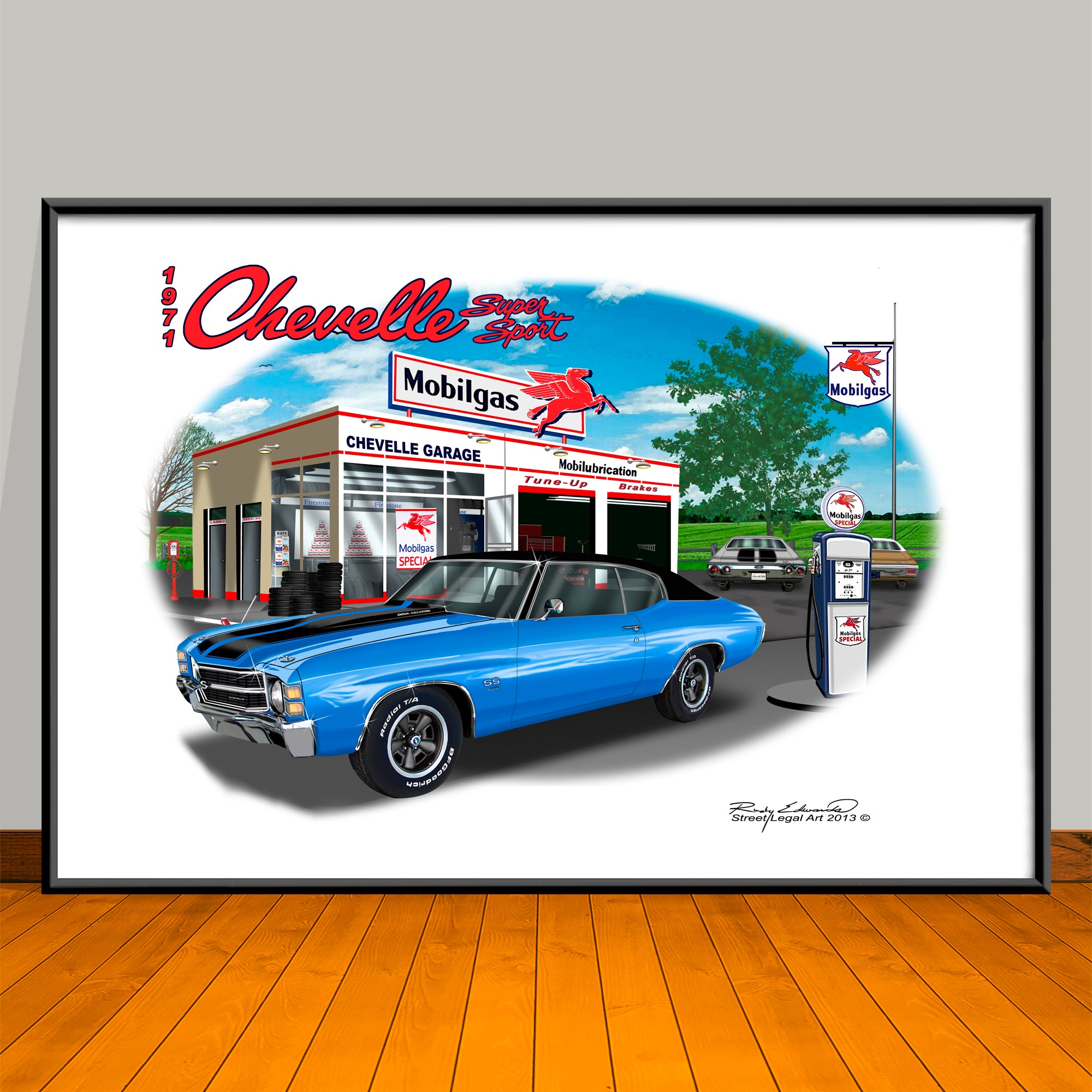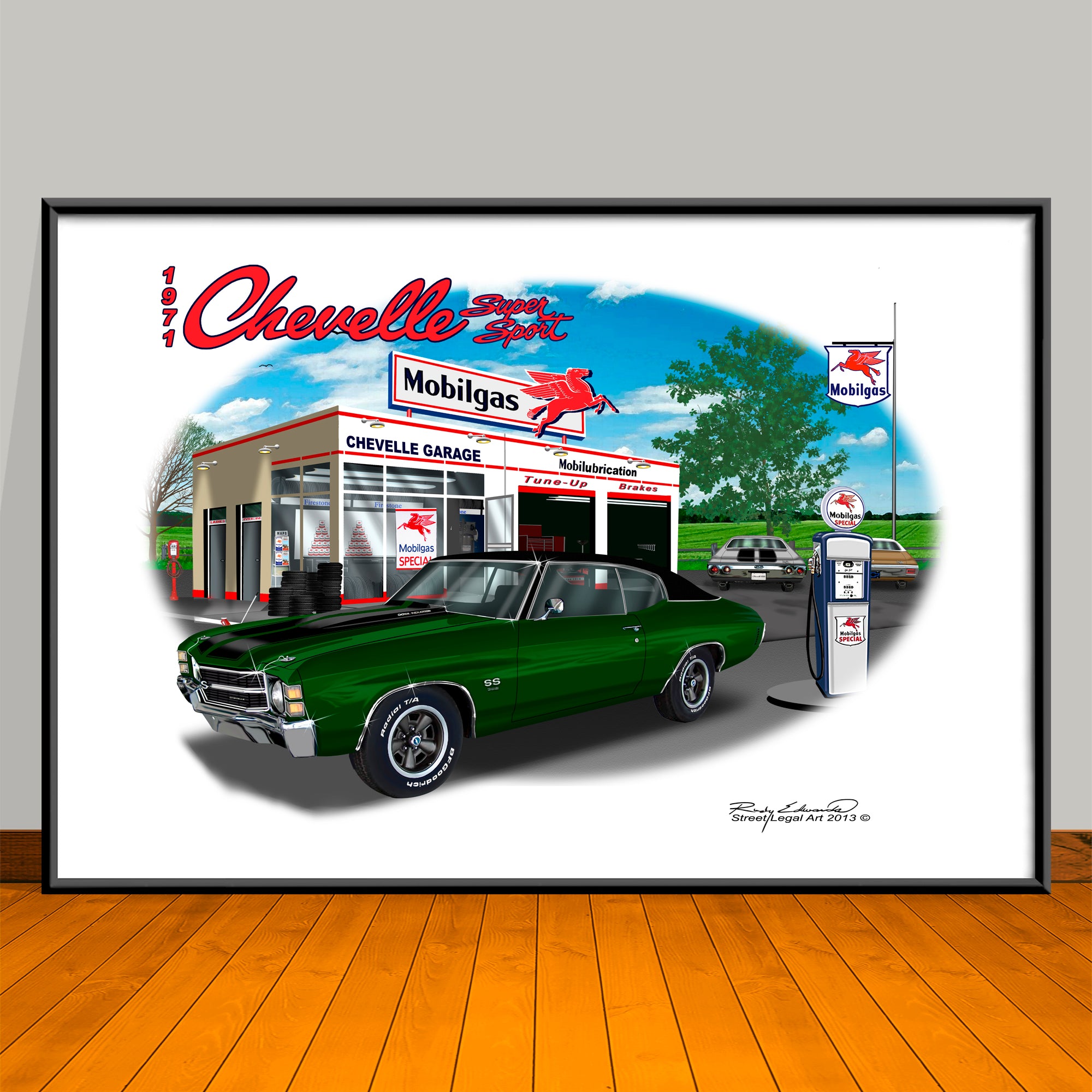 1971 Chevelle Malibu SS Stripe & Top Option Muscle Car Art Print - 13" X 19" UNFRAMED