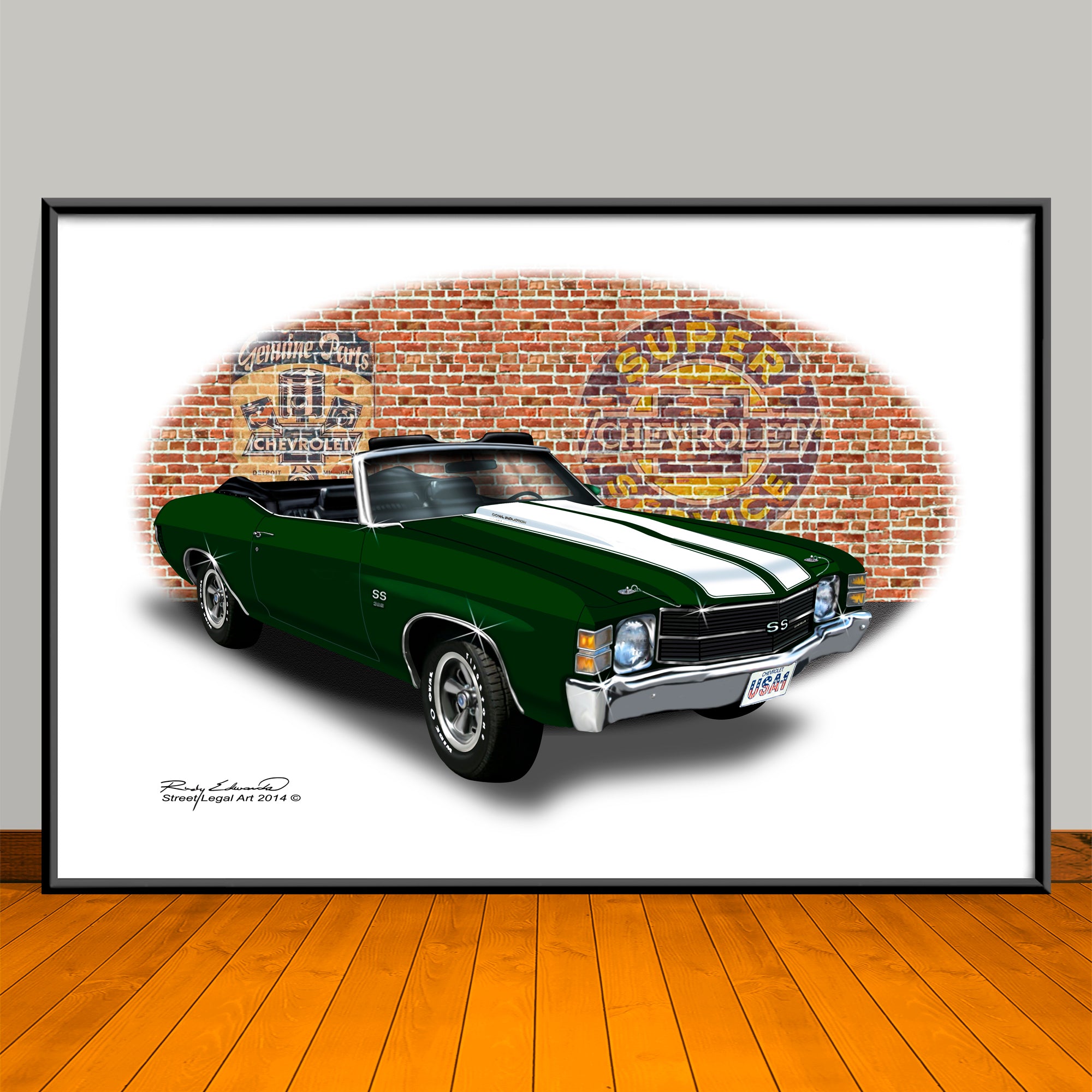 1971 Chevelle SS Convertible Dark Green Muscle Car Art Print - 13" X 19" UNFRAMED