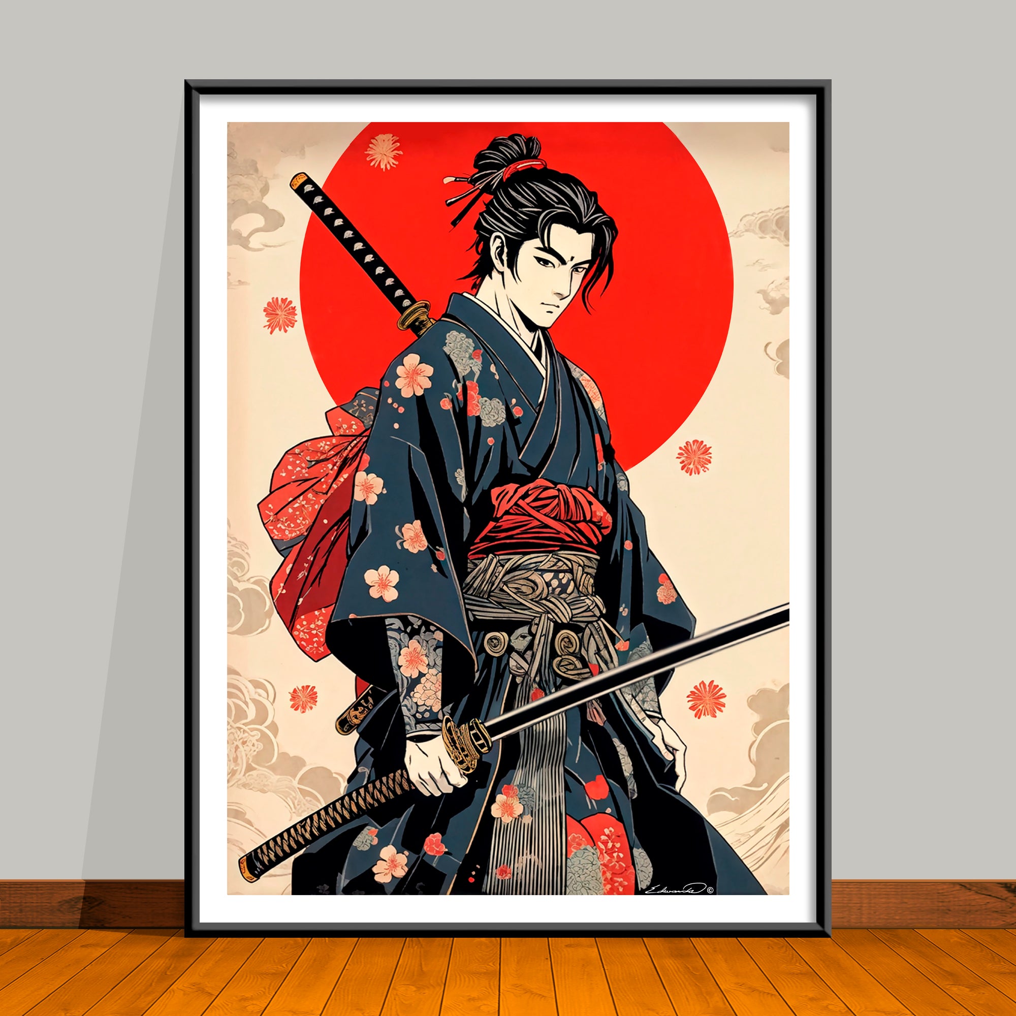 Bring the classic look of Japanese woodblock art into your home with this Ukiyo-e Samurai Print Collection. Each of the 5 designs captures the clean lines, flat colors, and iconic style of traditional prints. These pieces begin as AI-based concepts using my prompts, then are carefully refined in Photoshop to enhance detail and preserve the classic Ukiyo-e feel.