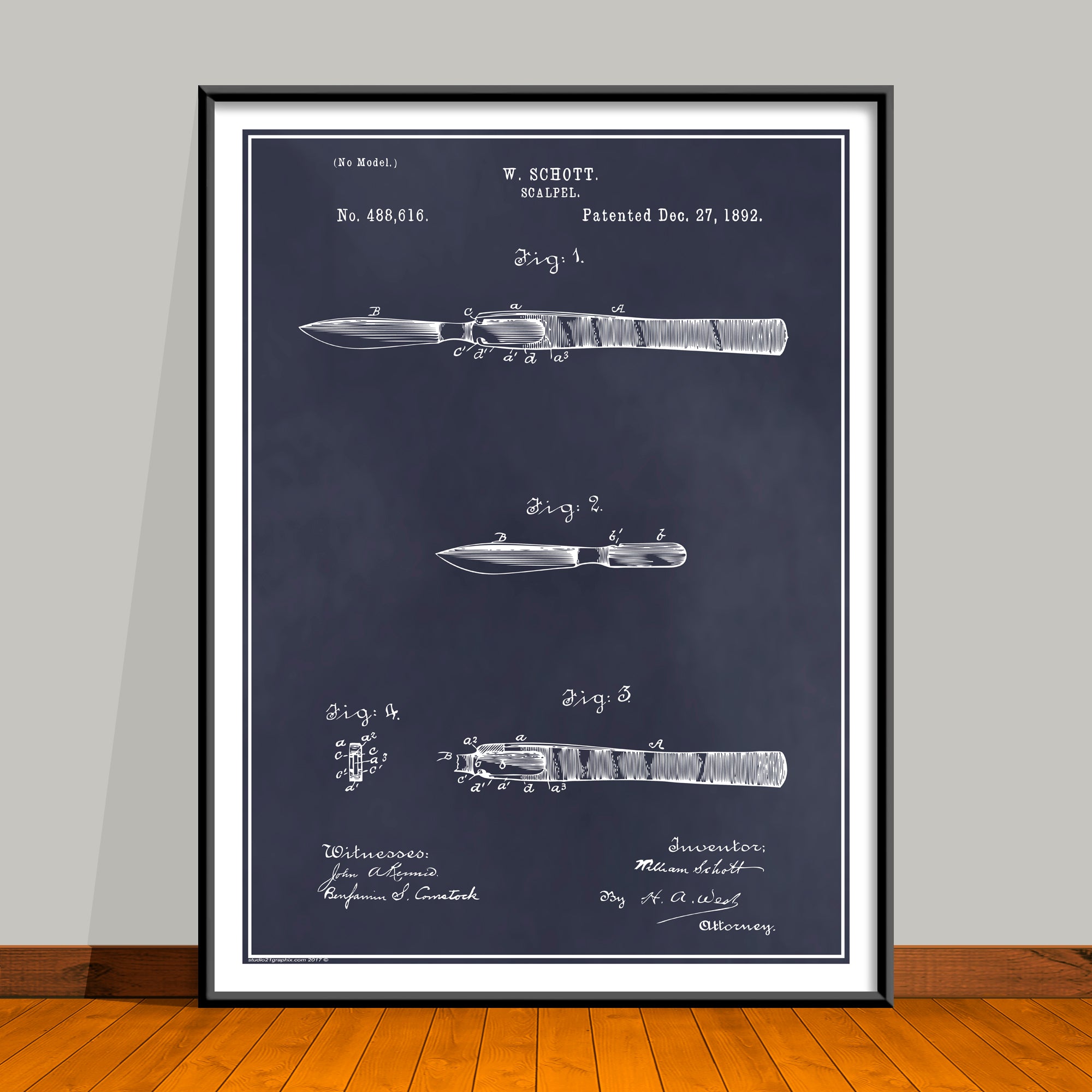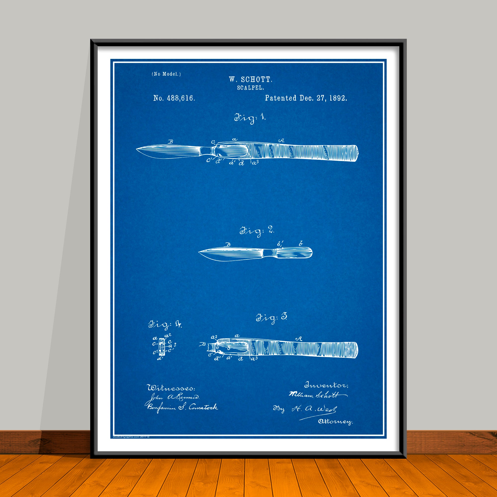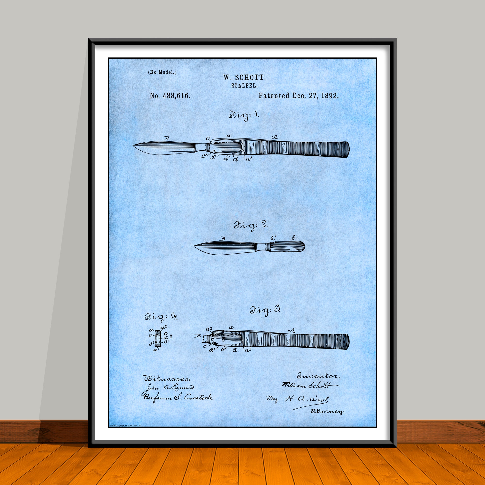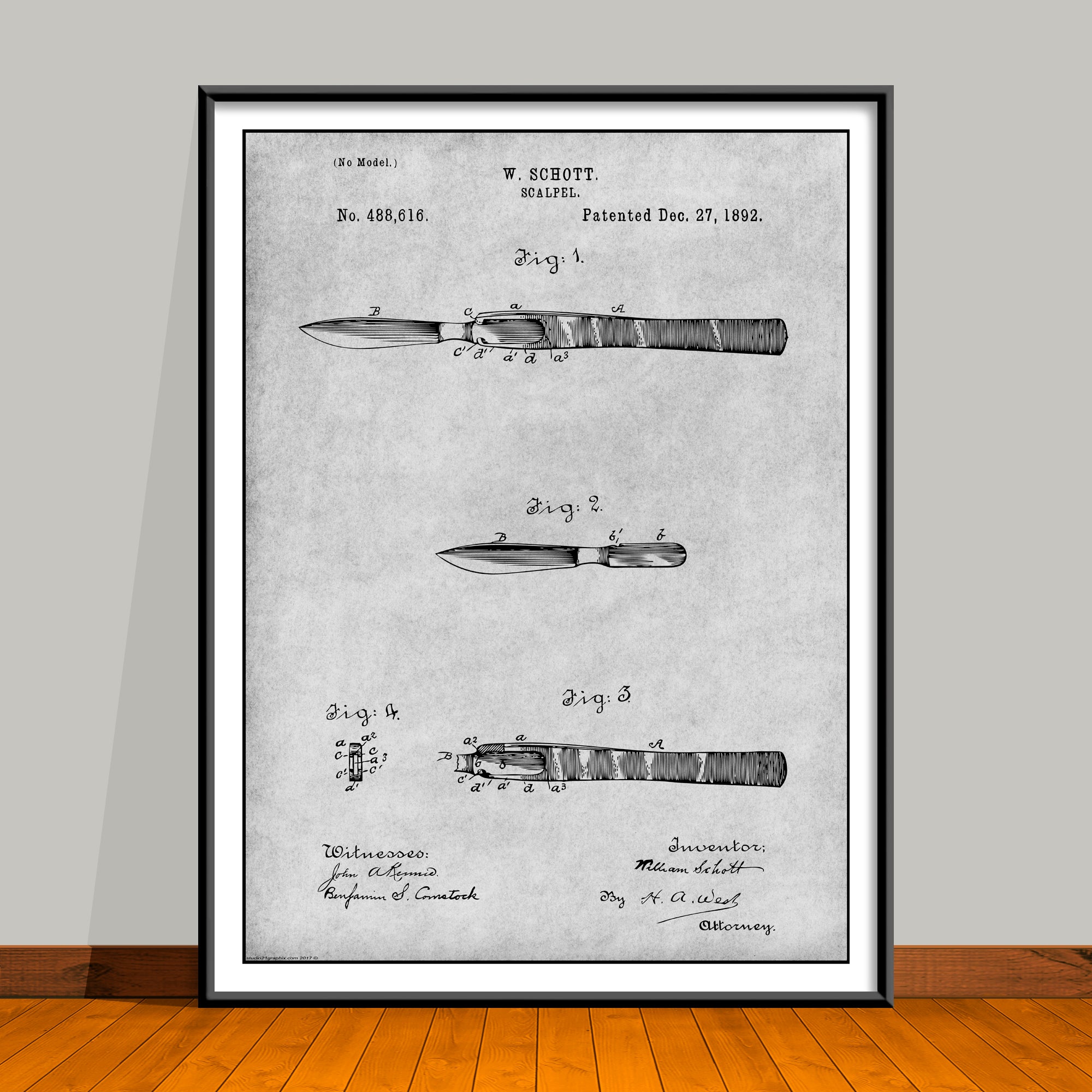 1892 Surgeons Scalpel Patent Print