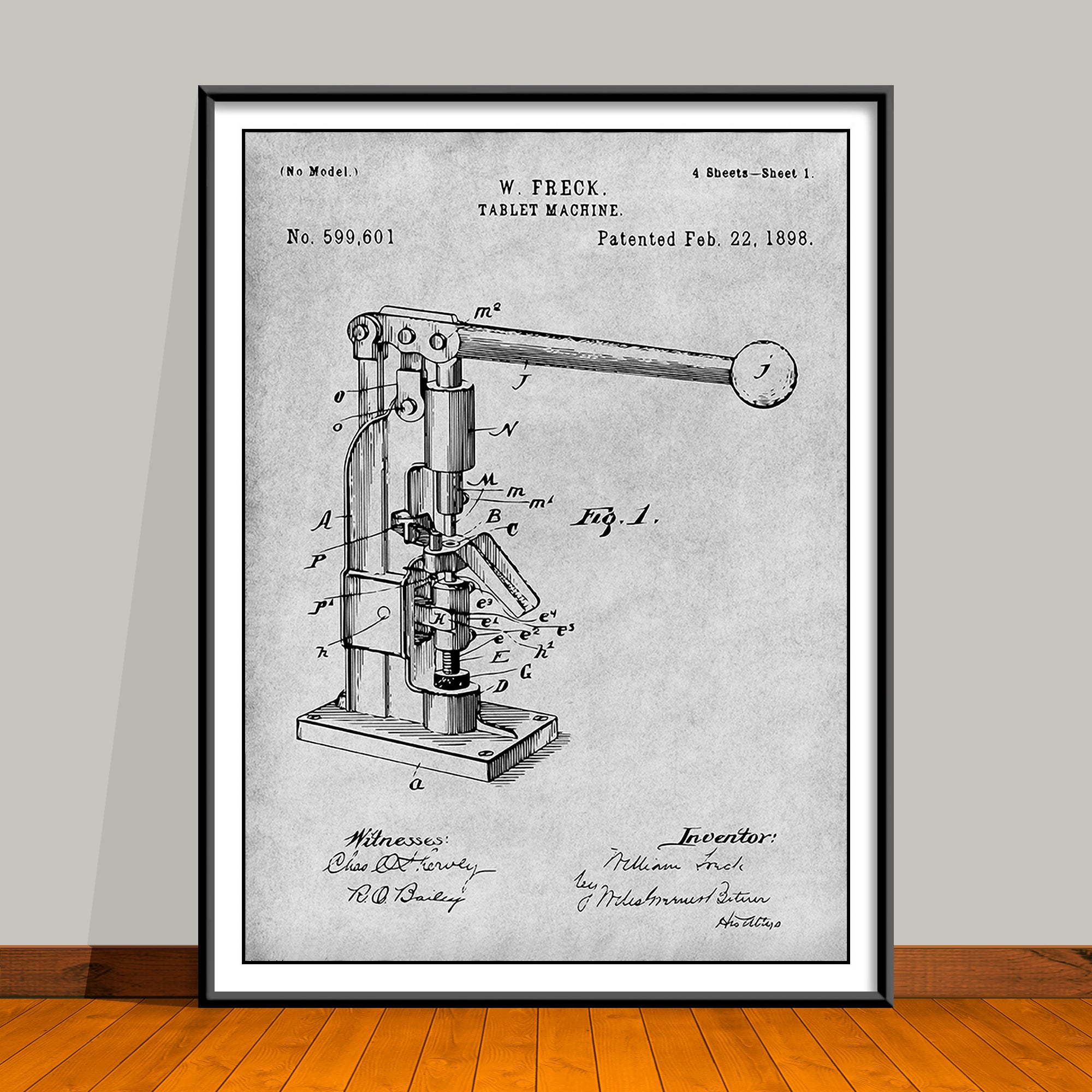 1898 Pharmacist's Tablet Machine Patent Print