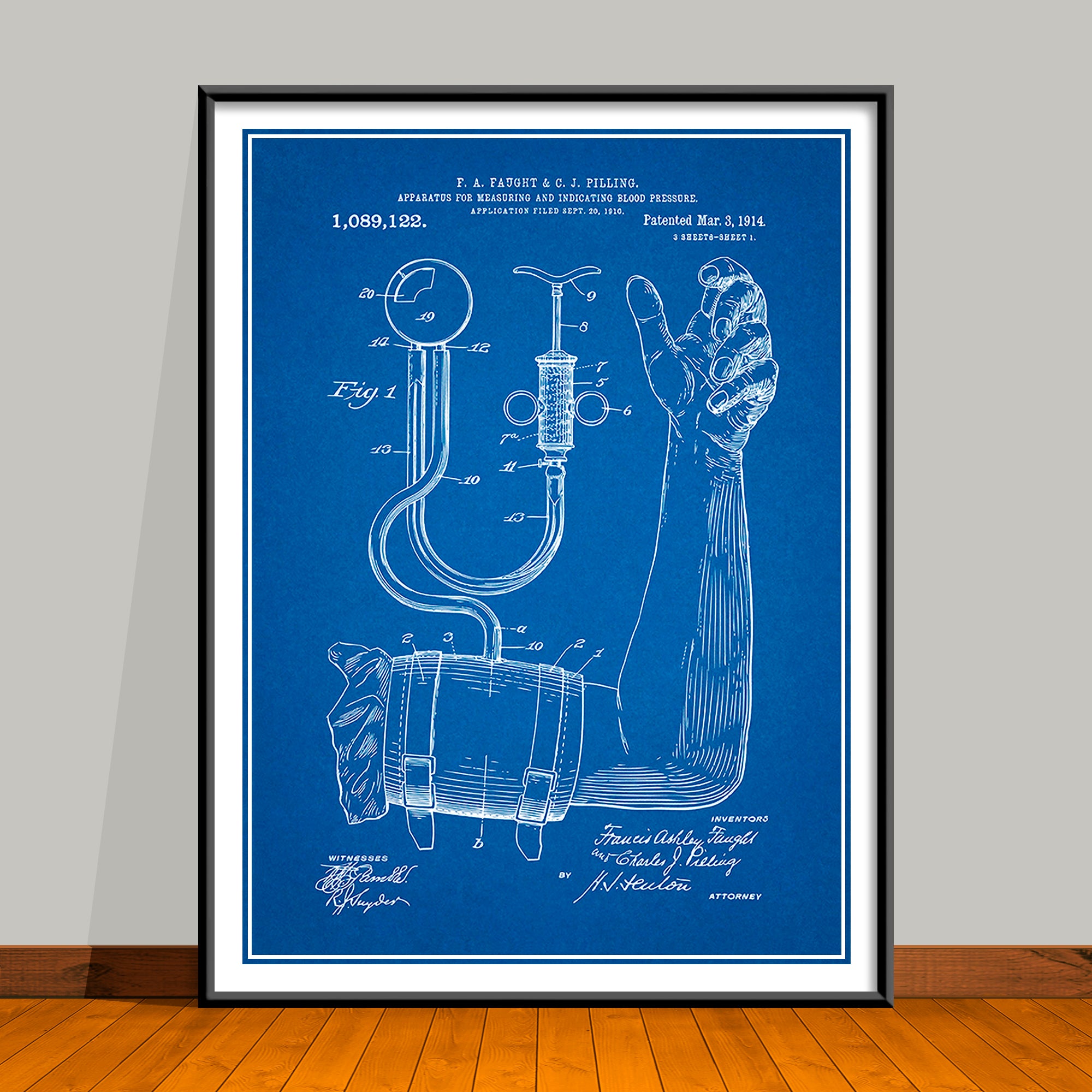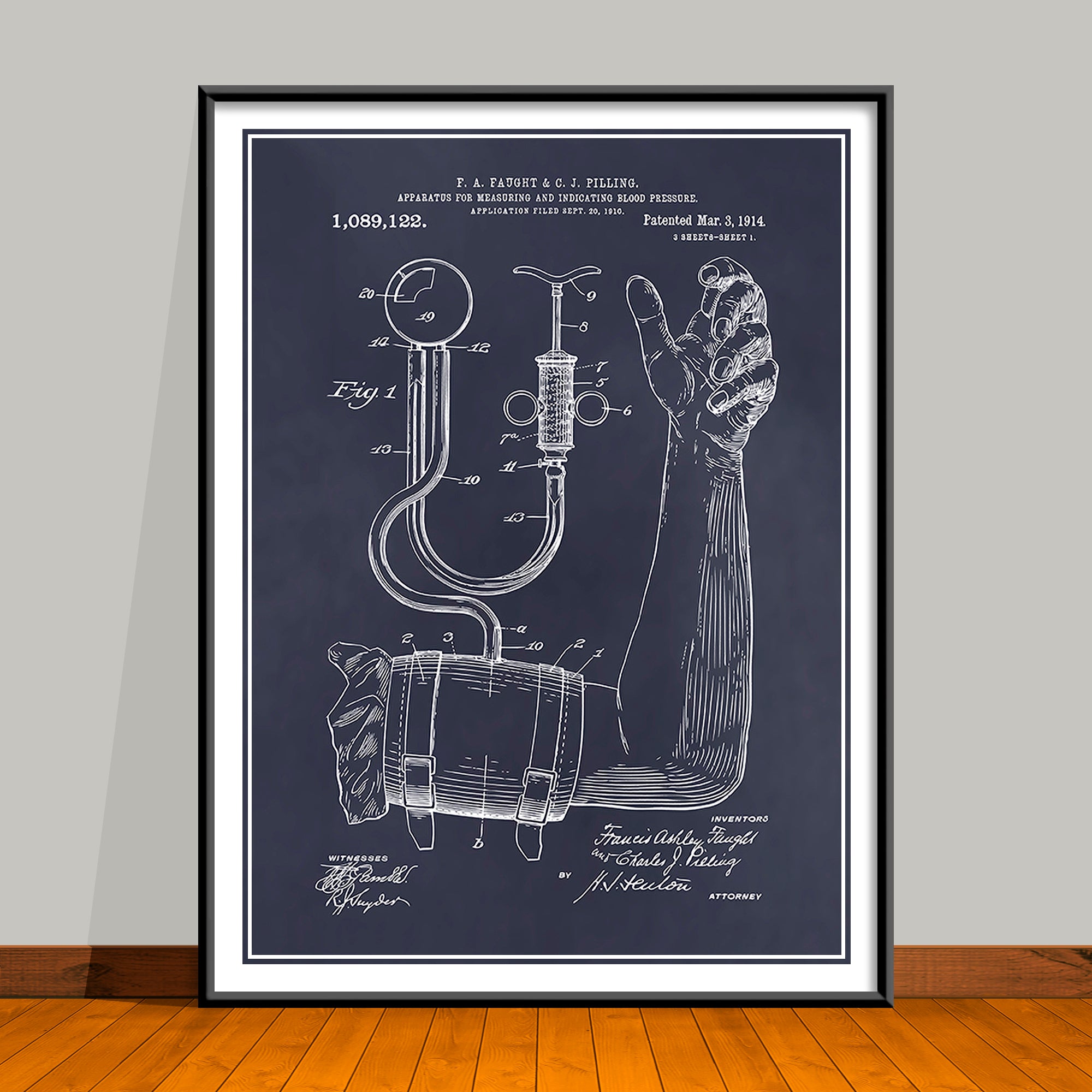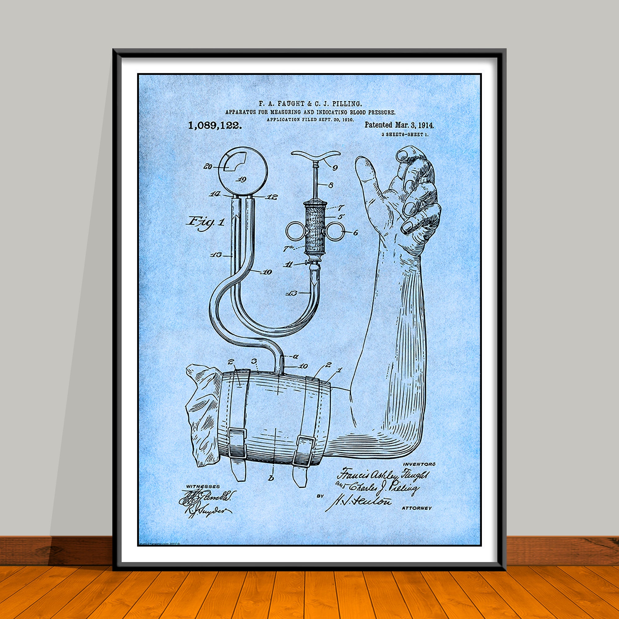 1914 Sphygmomanometer Blood Pressure Apparatus Patent Print
