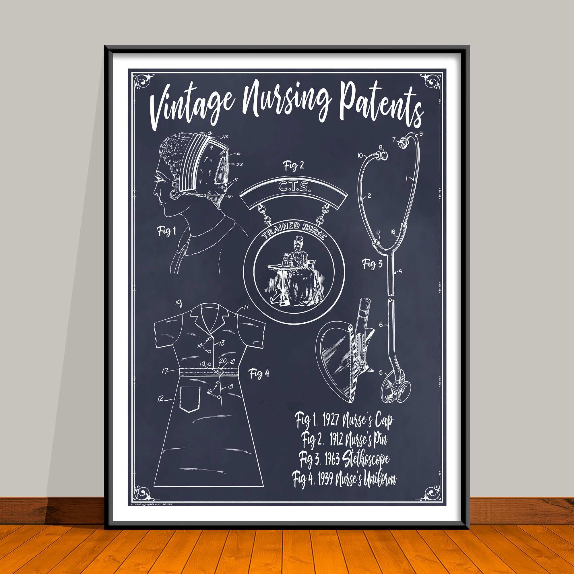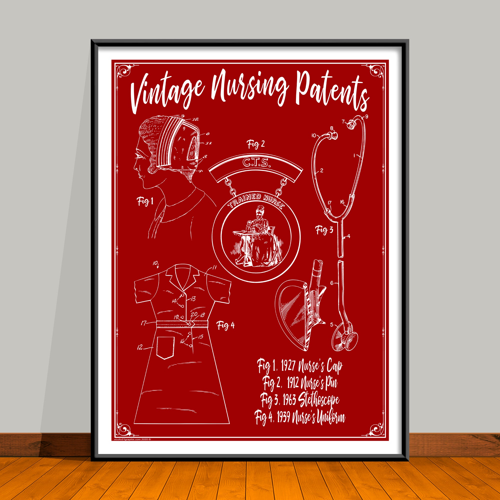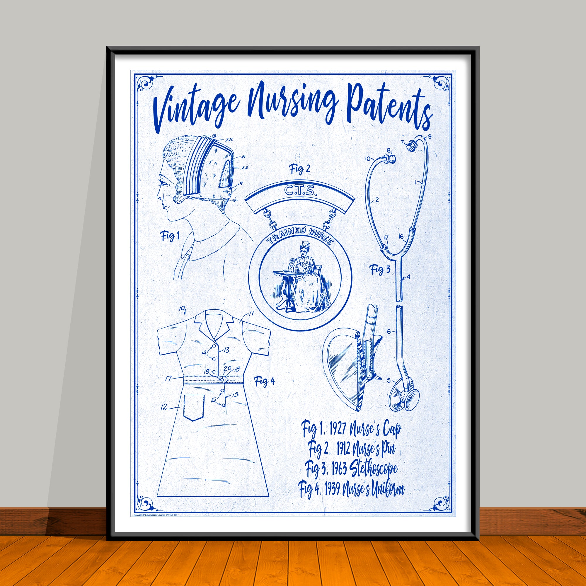More than just art, this piece is a tribute to the dedication and compassion of nursing. By blending historic patents with a bold, modern style, it honors the innovations that have shaped healthcare while celebrating the spirit of those who care for others. A meaningful gift that carries both history and heart.