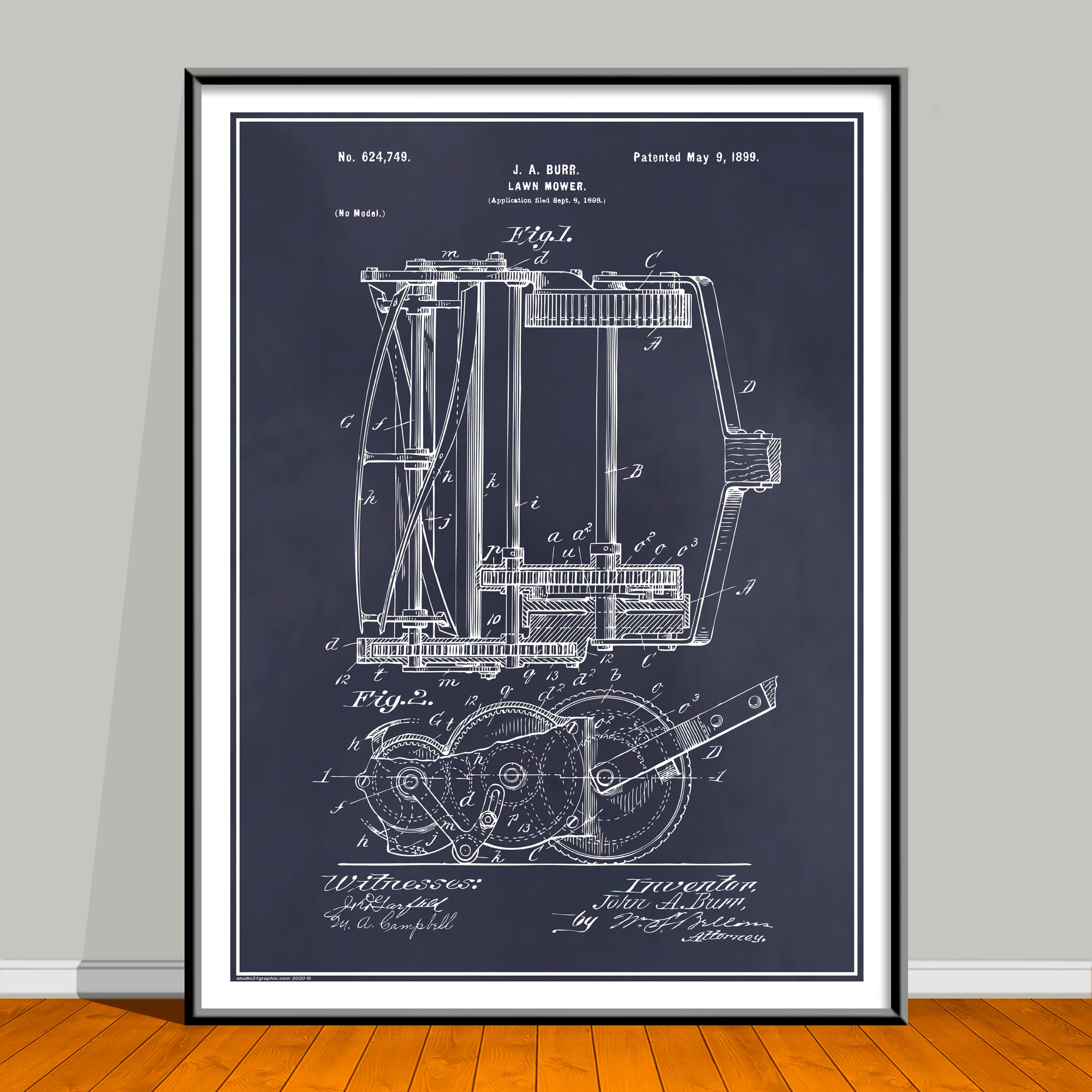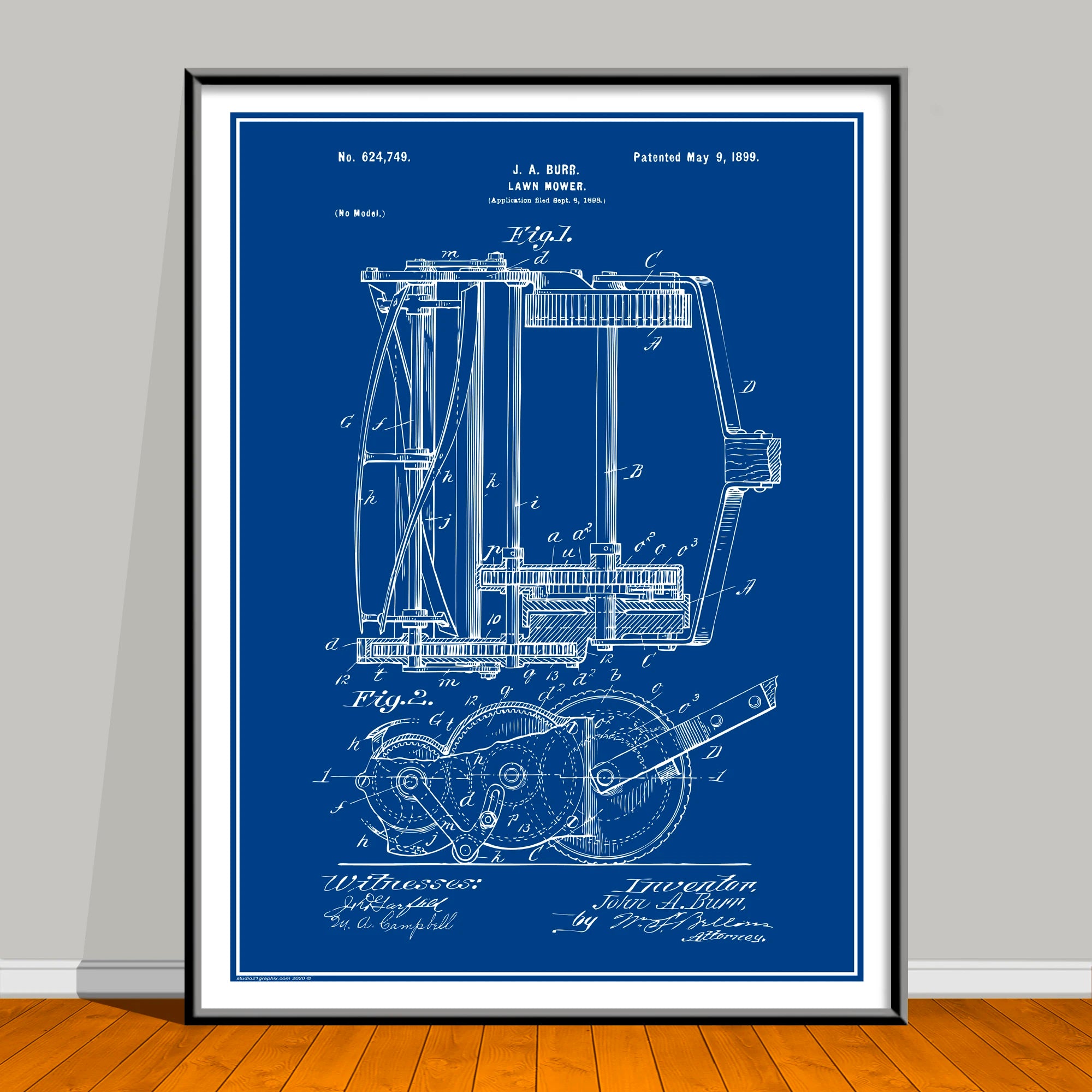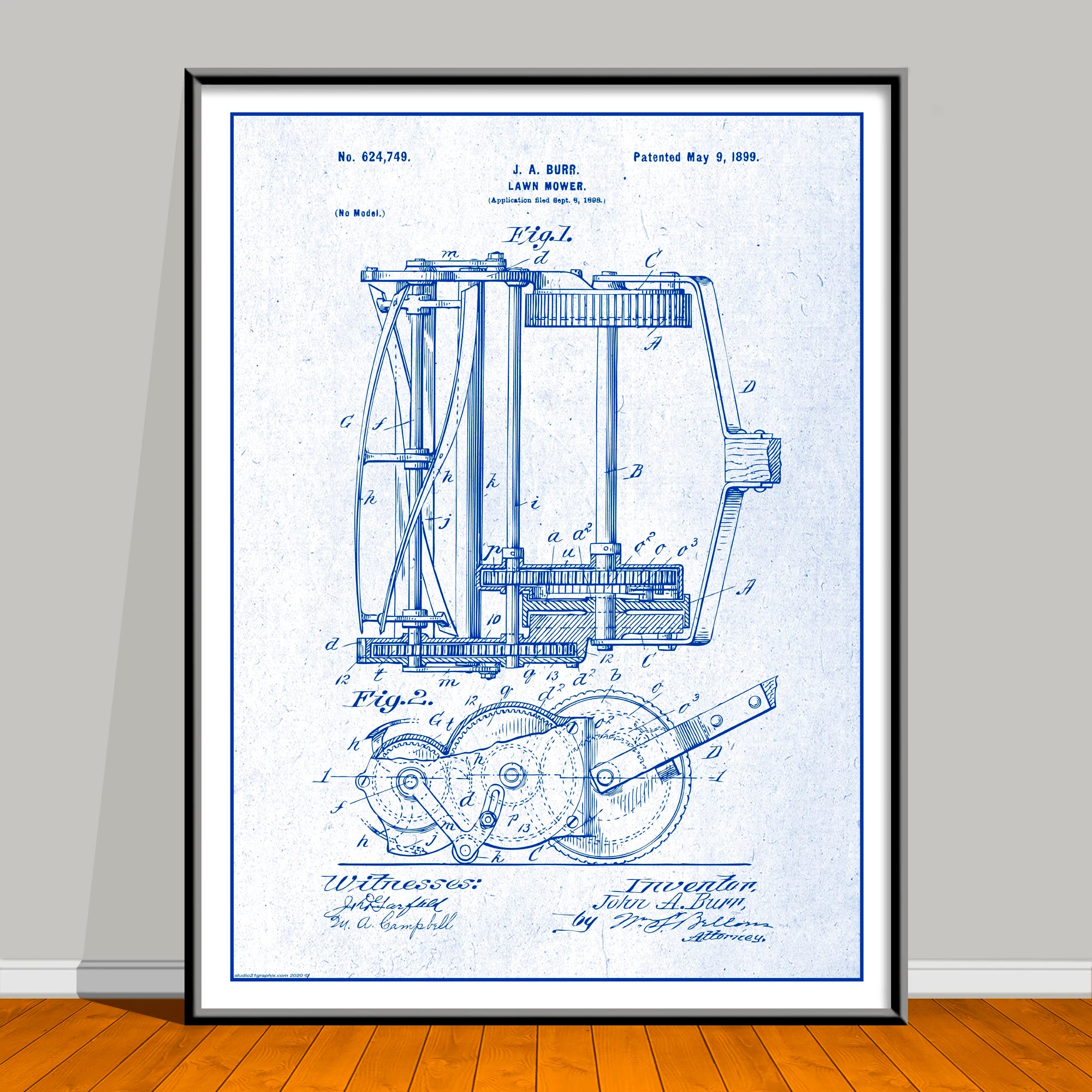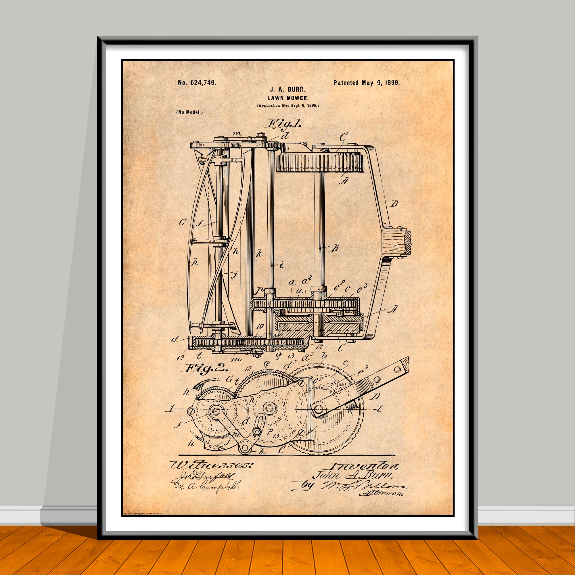 1898 J.A. Burr Lawn Mower Patent Print