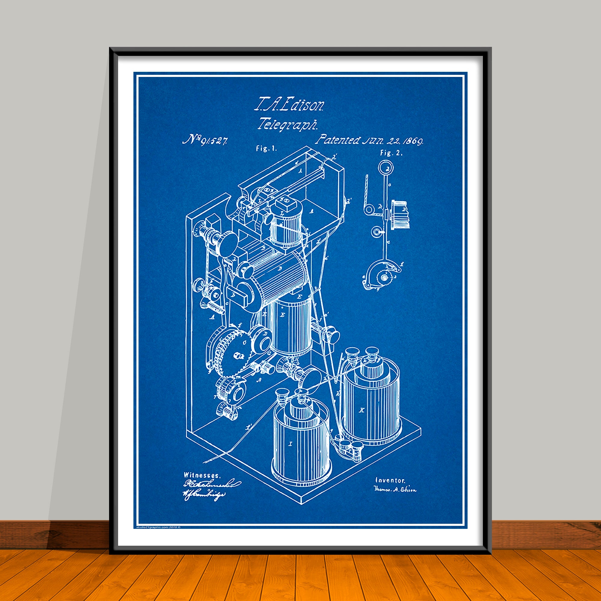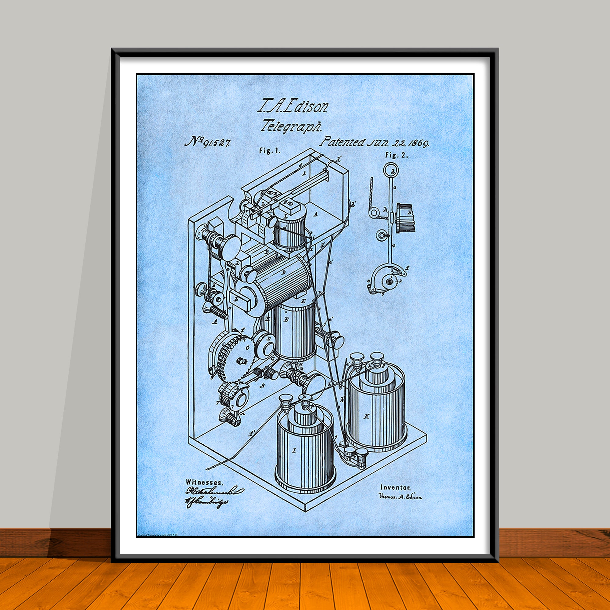 1869 Thomas Edison Telegraph Patent Print
