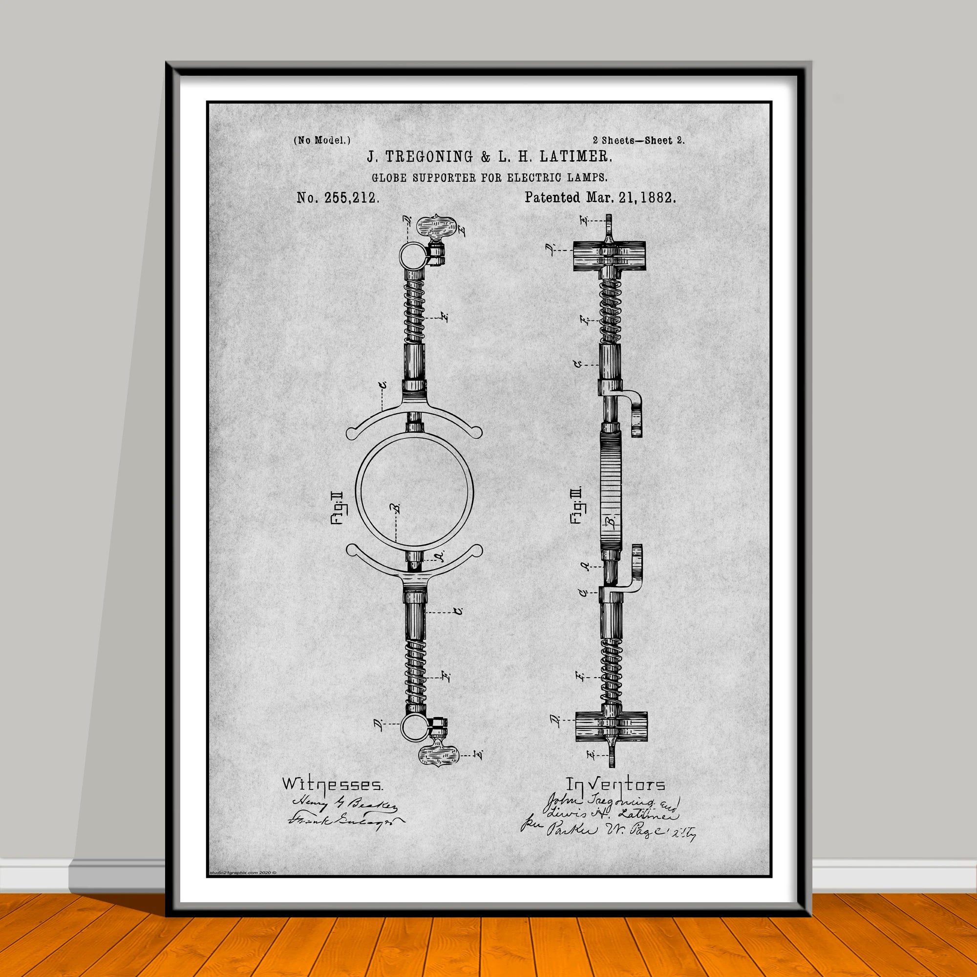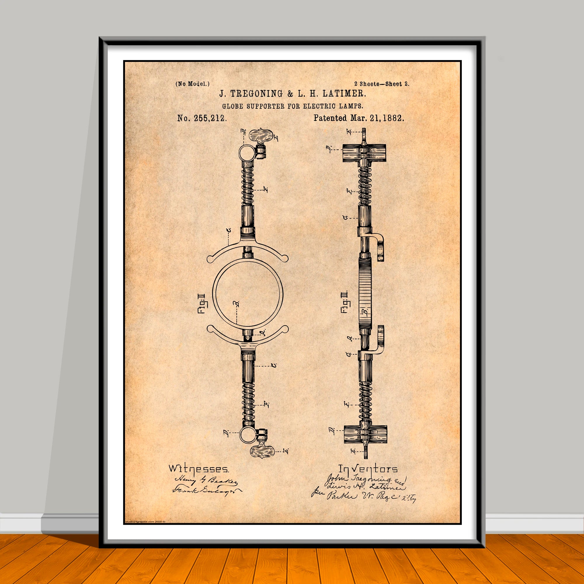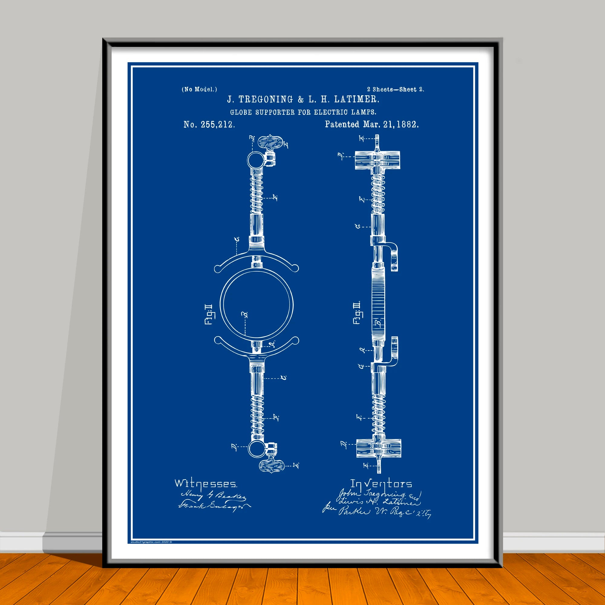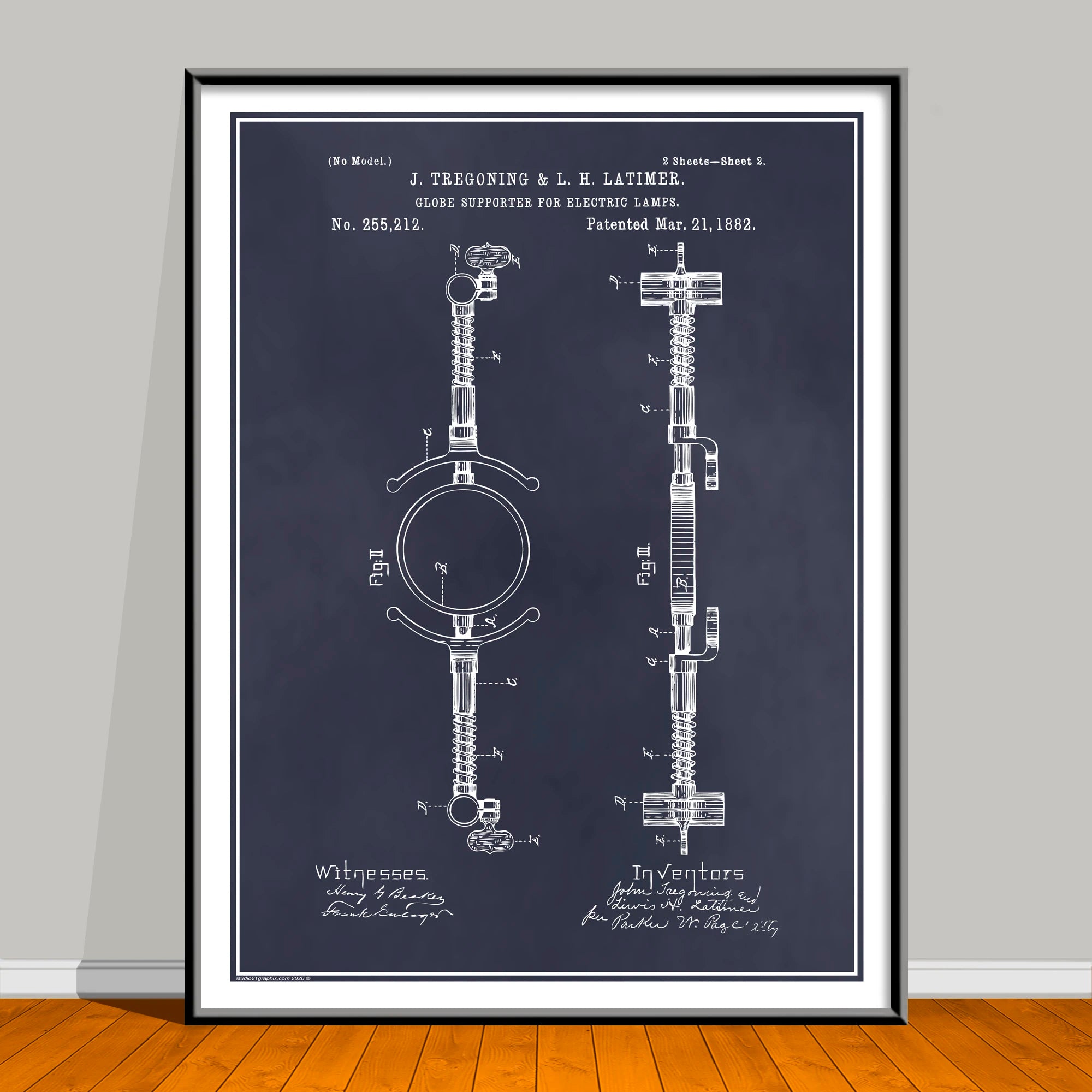 Celebrate Black History Month all year with this striking African American Patent Print featuring trailblazer J. Tregoning & L.H. Latimer. Based on an authentic U.S. patent sourced from the public domain, this piece has been carefully restored and artistically enhanced in Photoshop for a bold, modern look—while honoring the groundbreaking innovation behind the original design. This artwork is not affiliated with, endorsed by, or connected to any brand, company, or trademark owner.