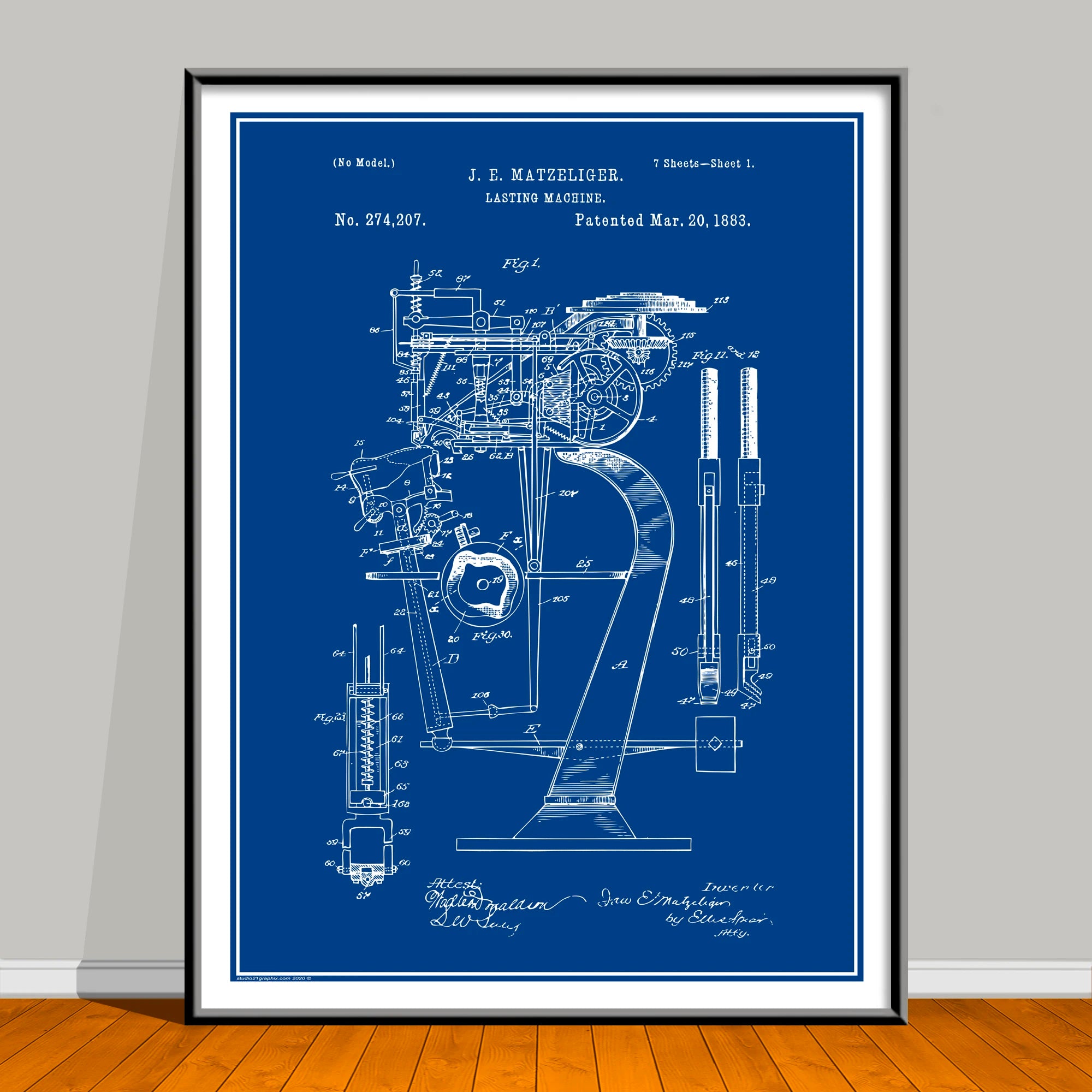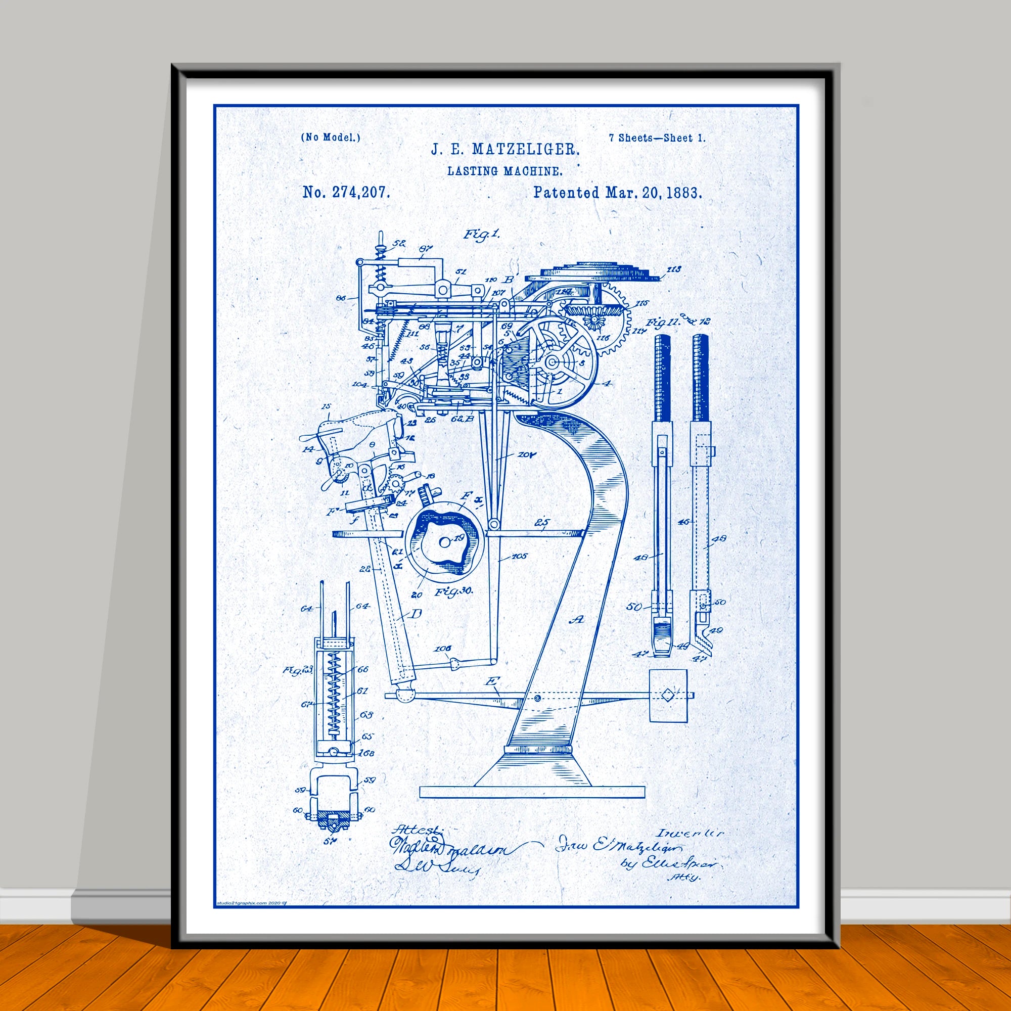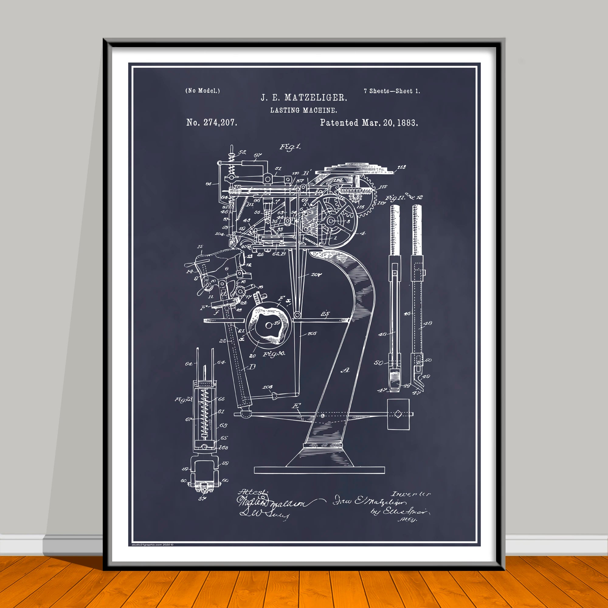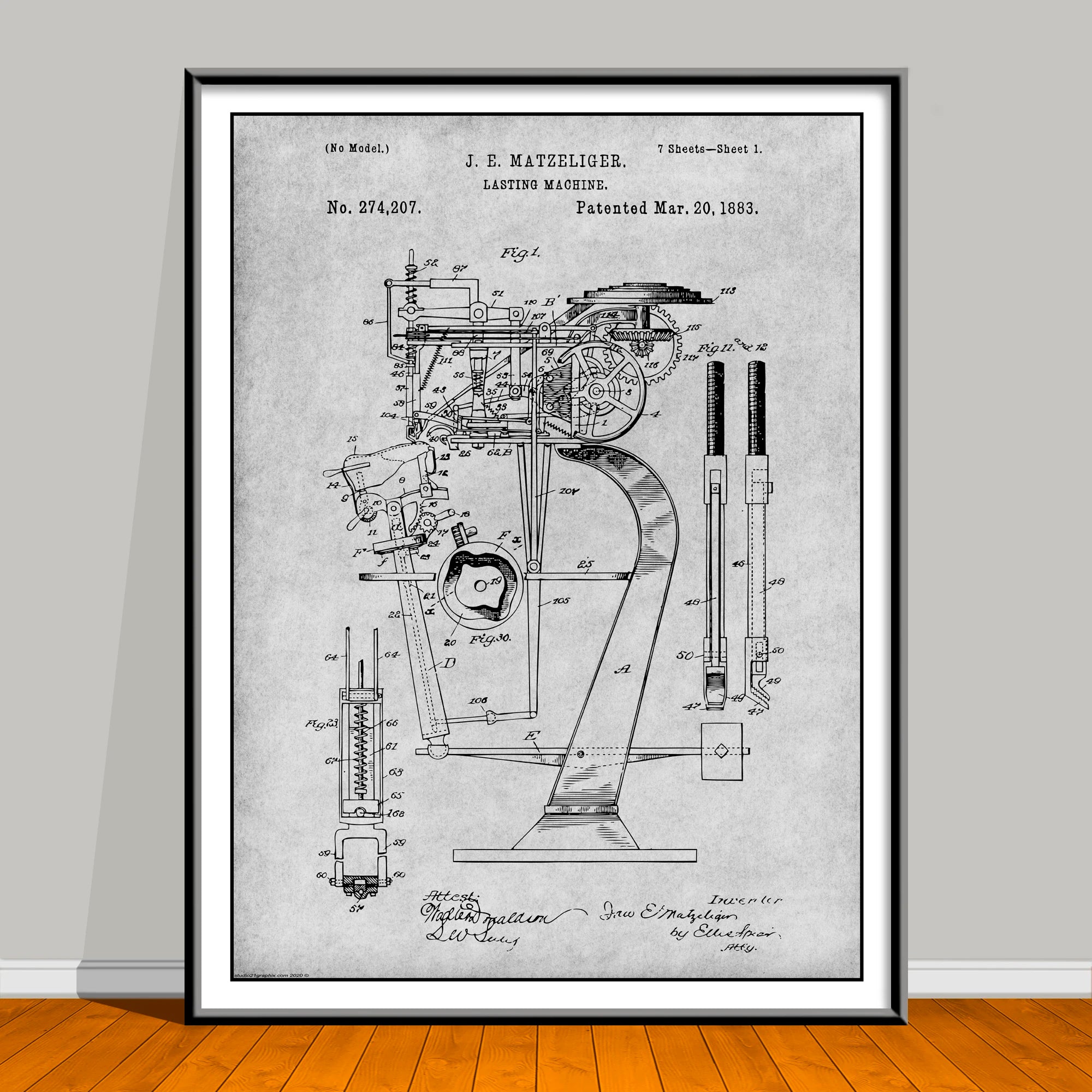 1883 J.E. Matzeliger Lasting Machine Patent Print