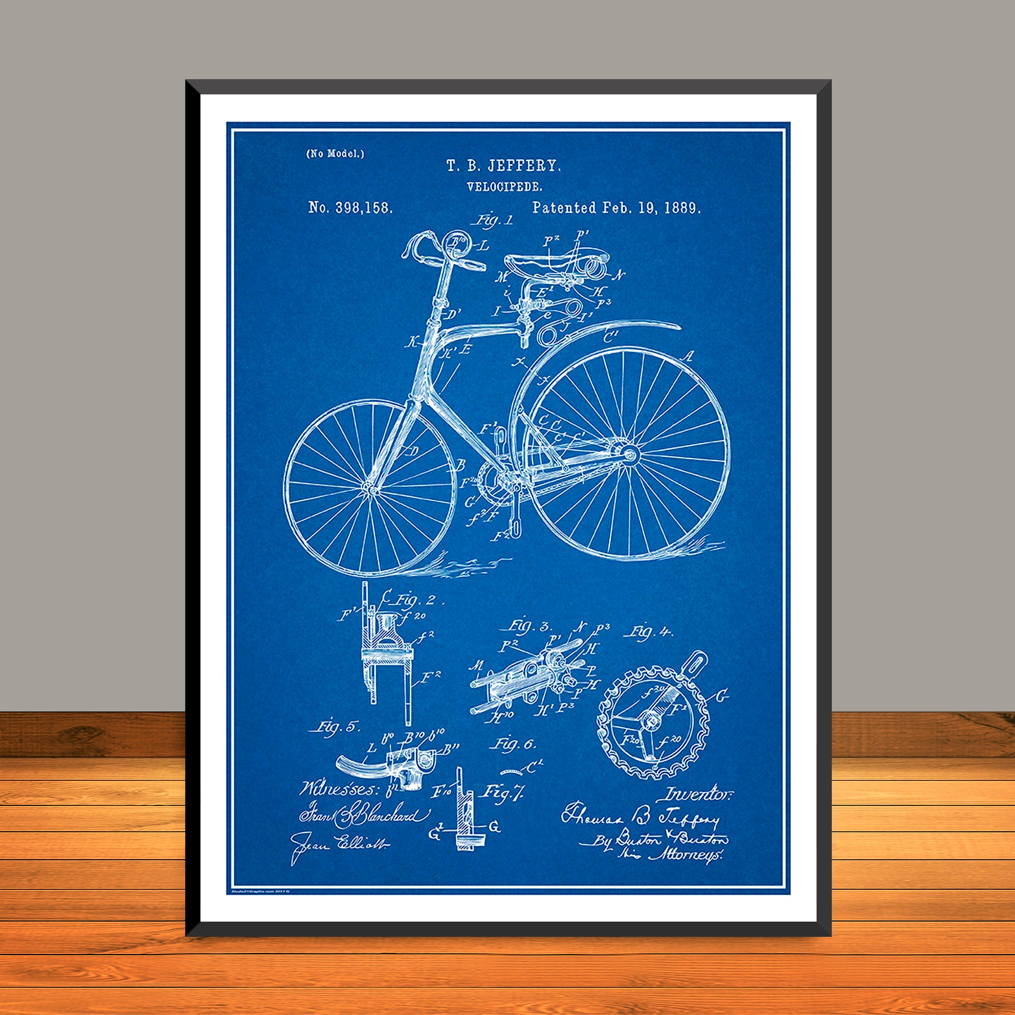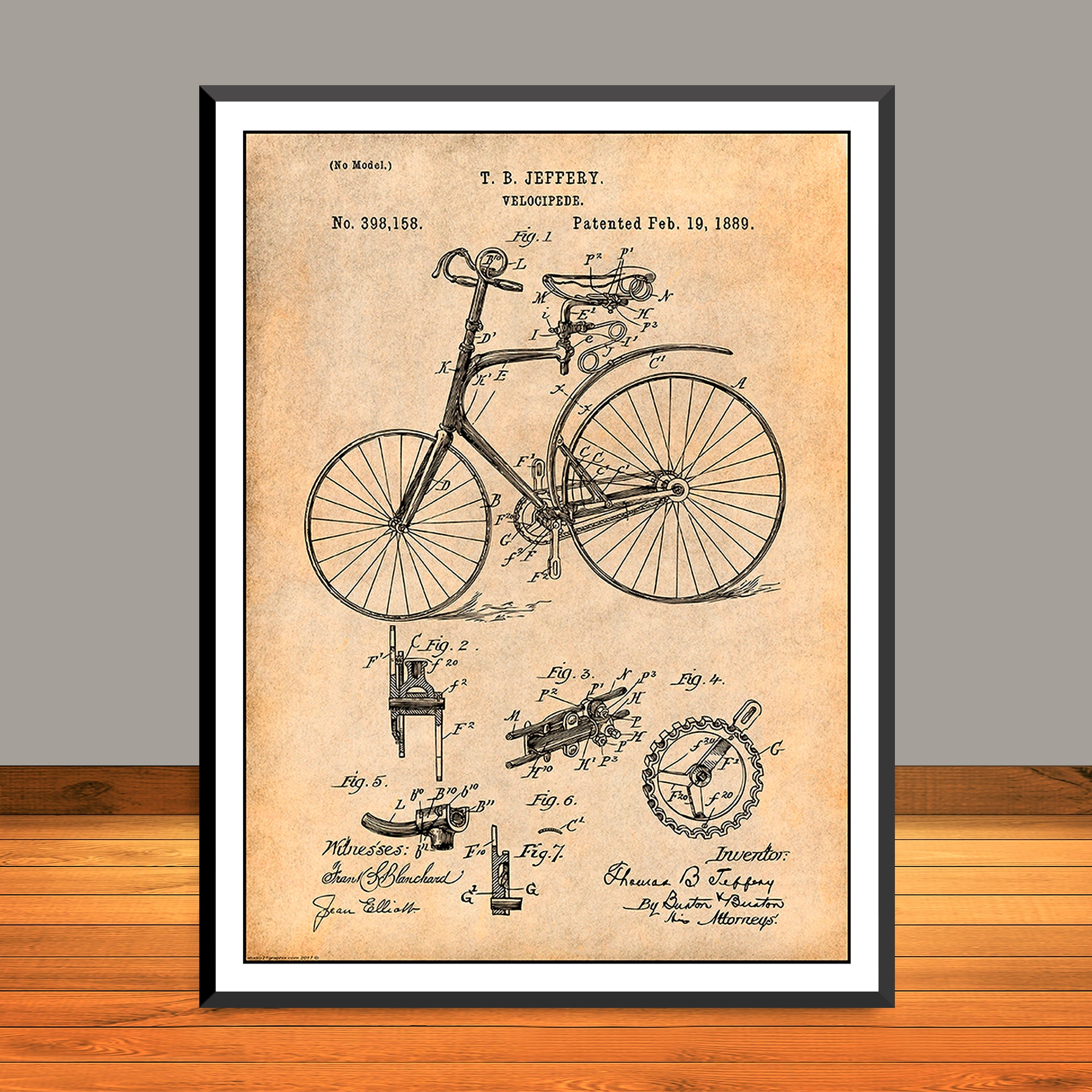 1889 Jeffery Velocipede Bicycle Patent Print