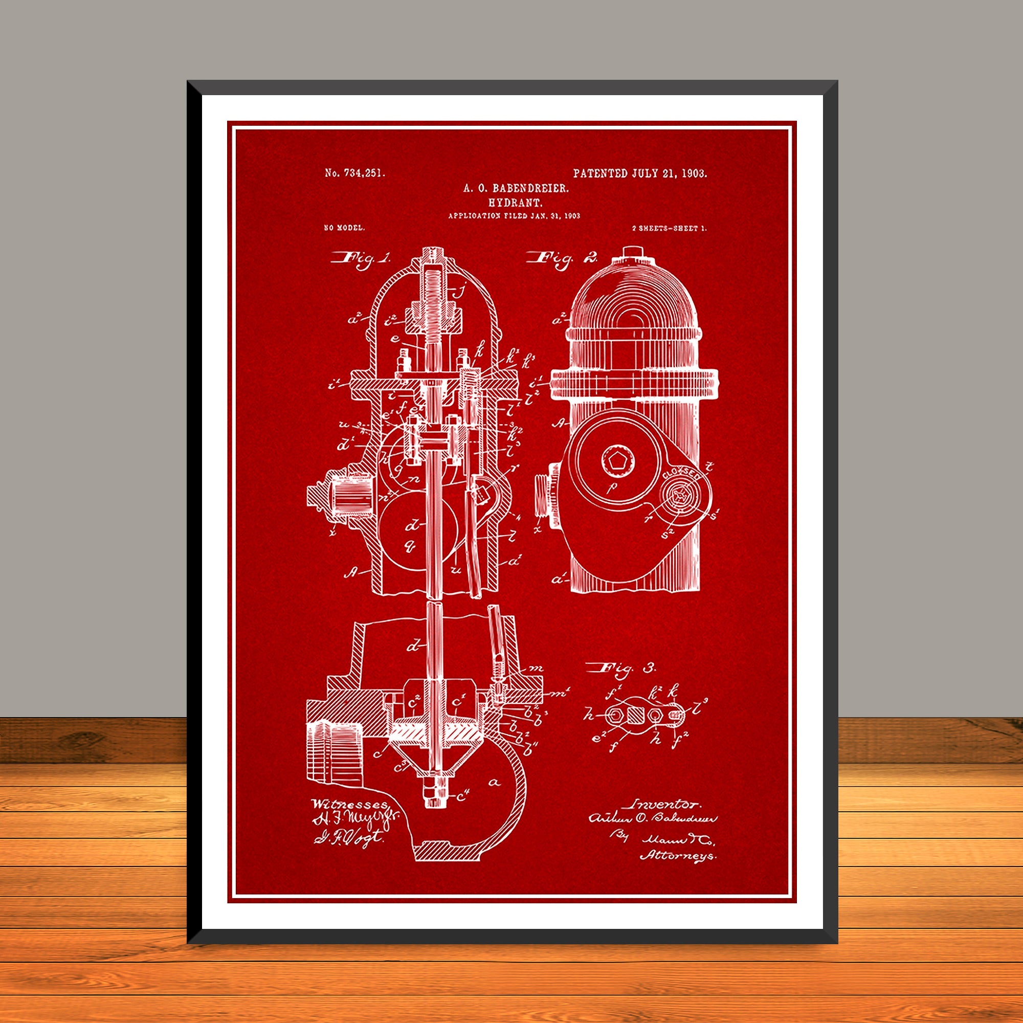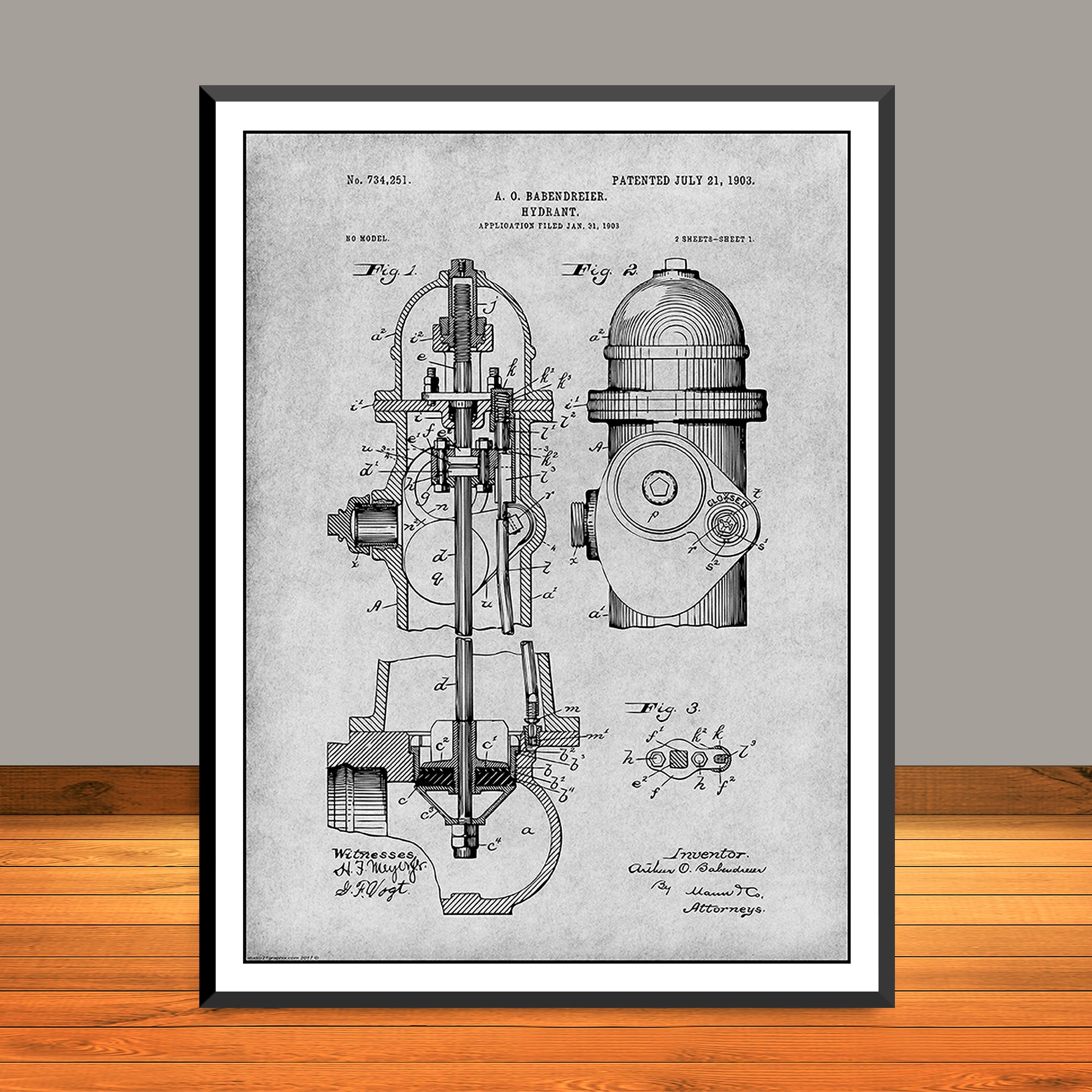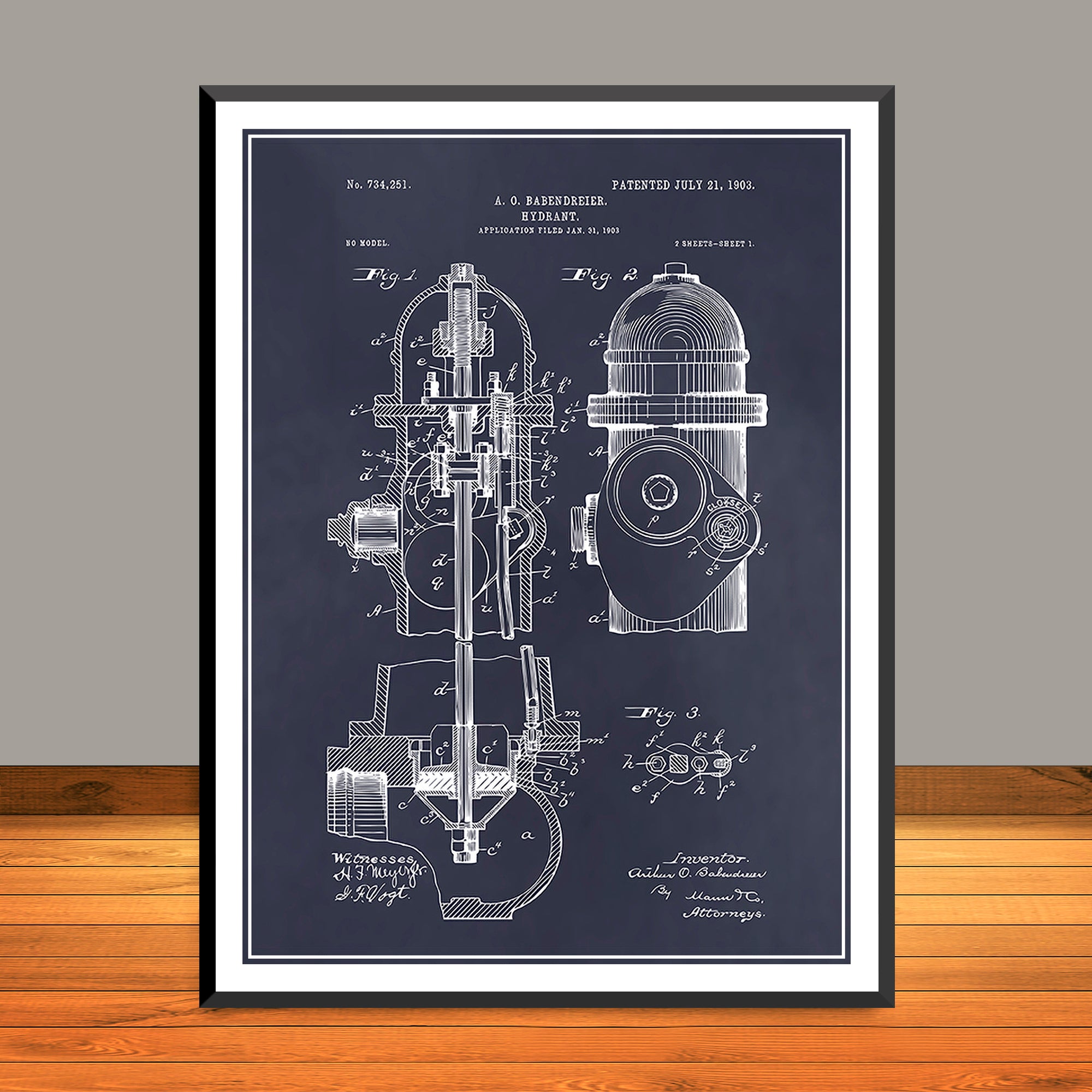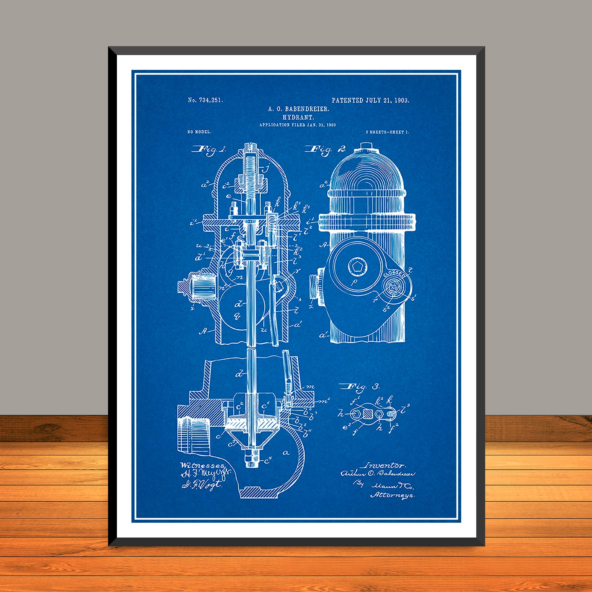 1903 Fire Hydrant Patent Poster Print