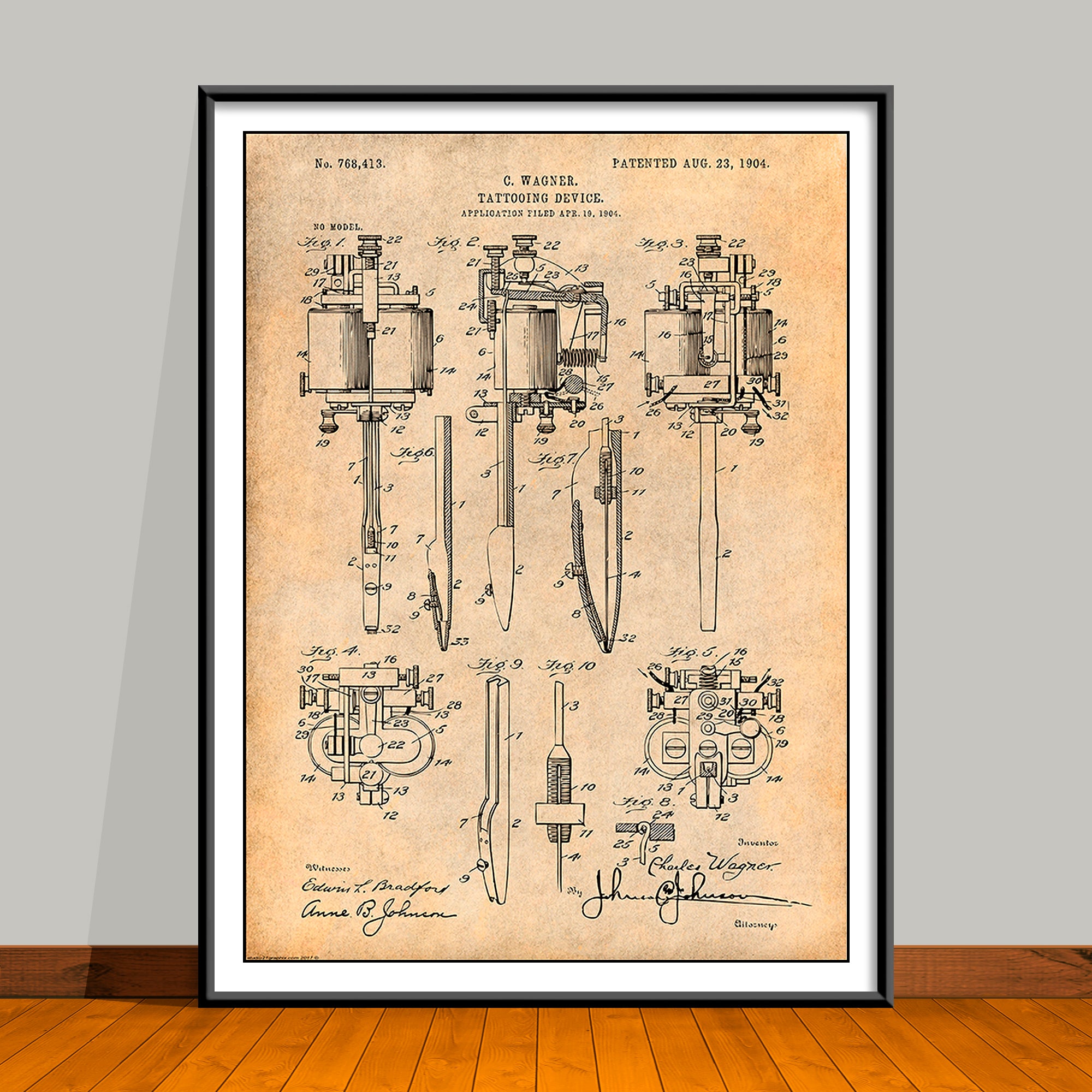 1904 Wagner Tattooing Device Patent Print