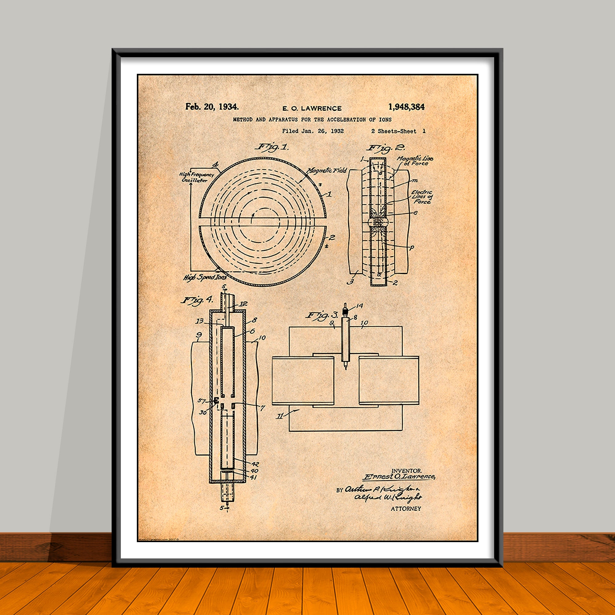 1932 Cyclotron Atom Splitter Particle Accelerator Patent Print