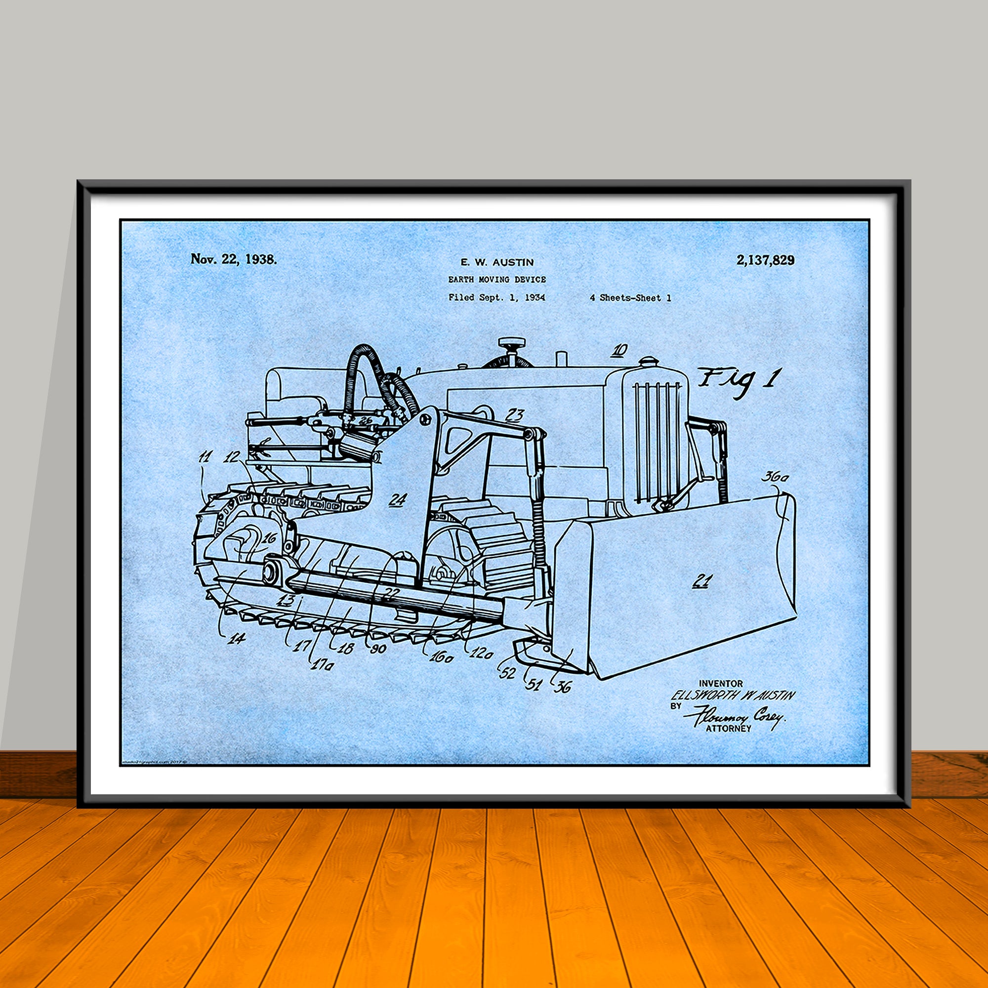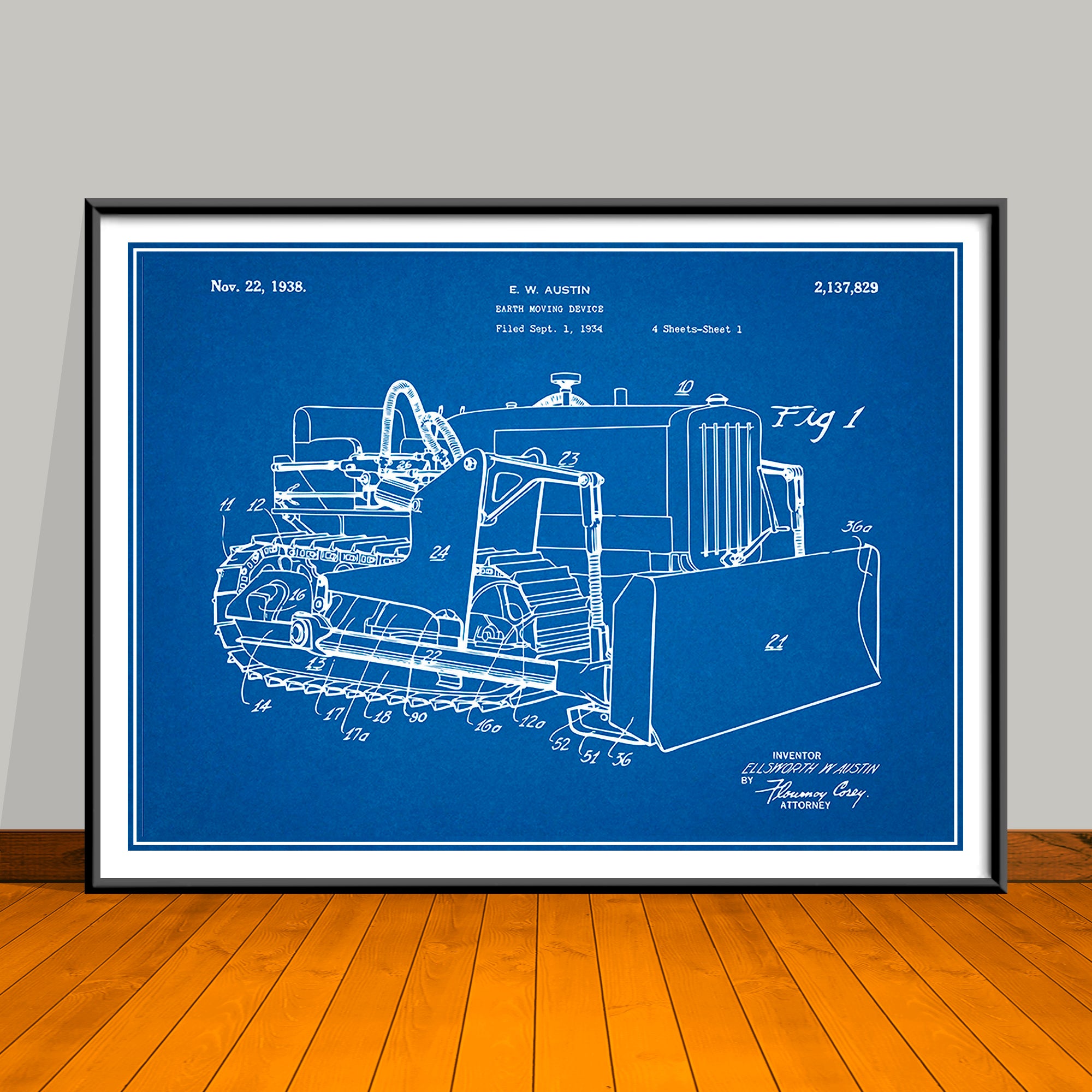 1934 Earth Moving Bulldozer Horizontal Patent Print