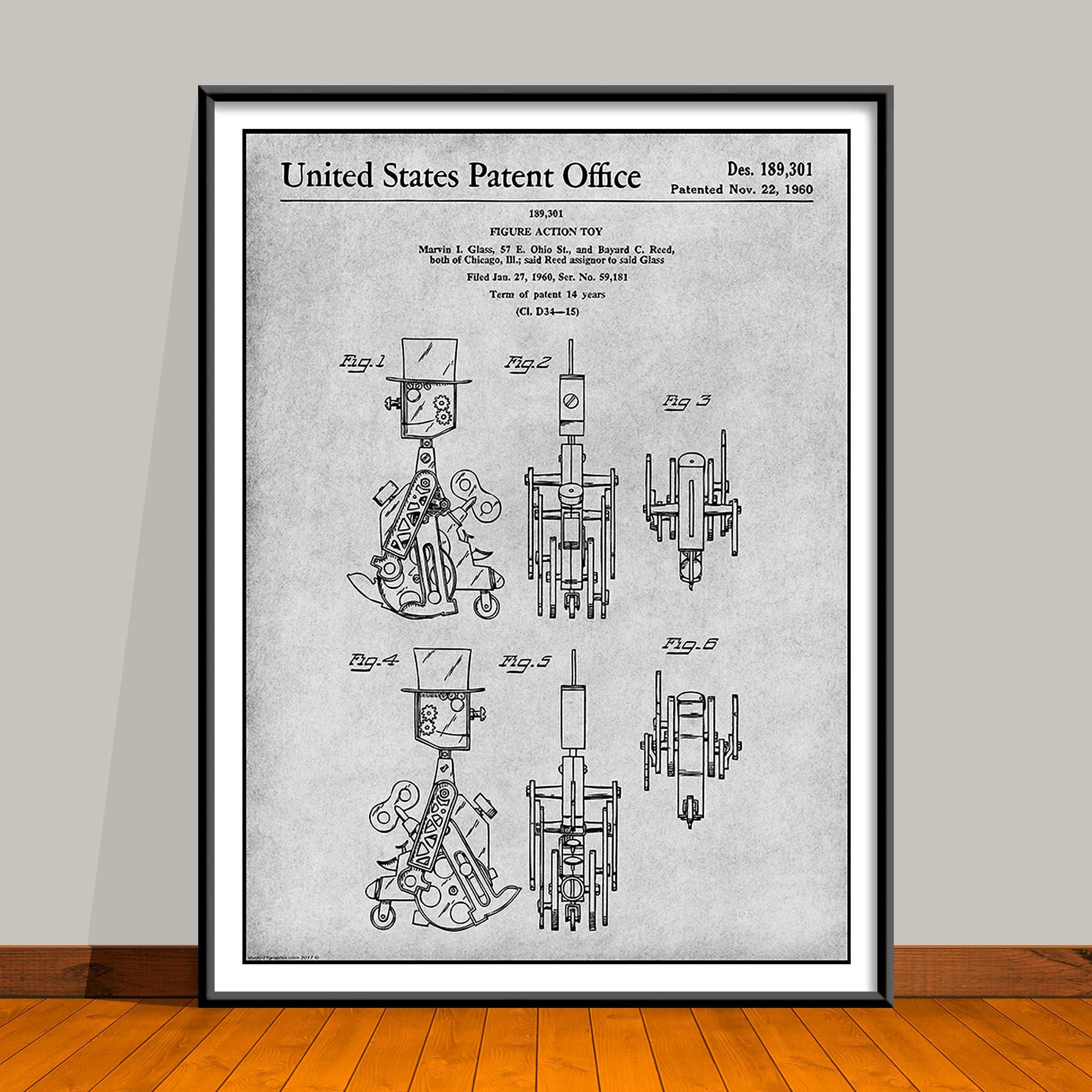 1960 Mr. Machine Mechanical Toy Robot Patent Print