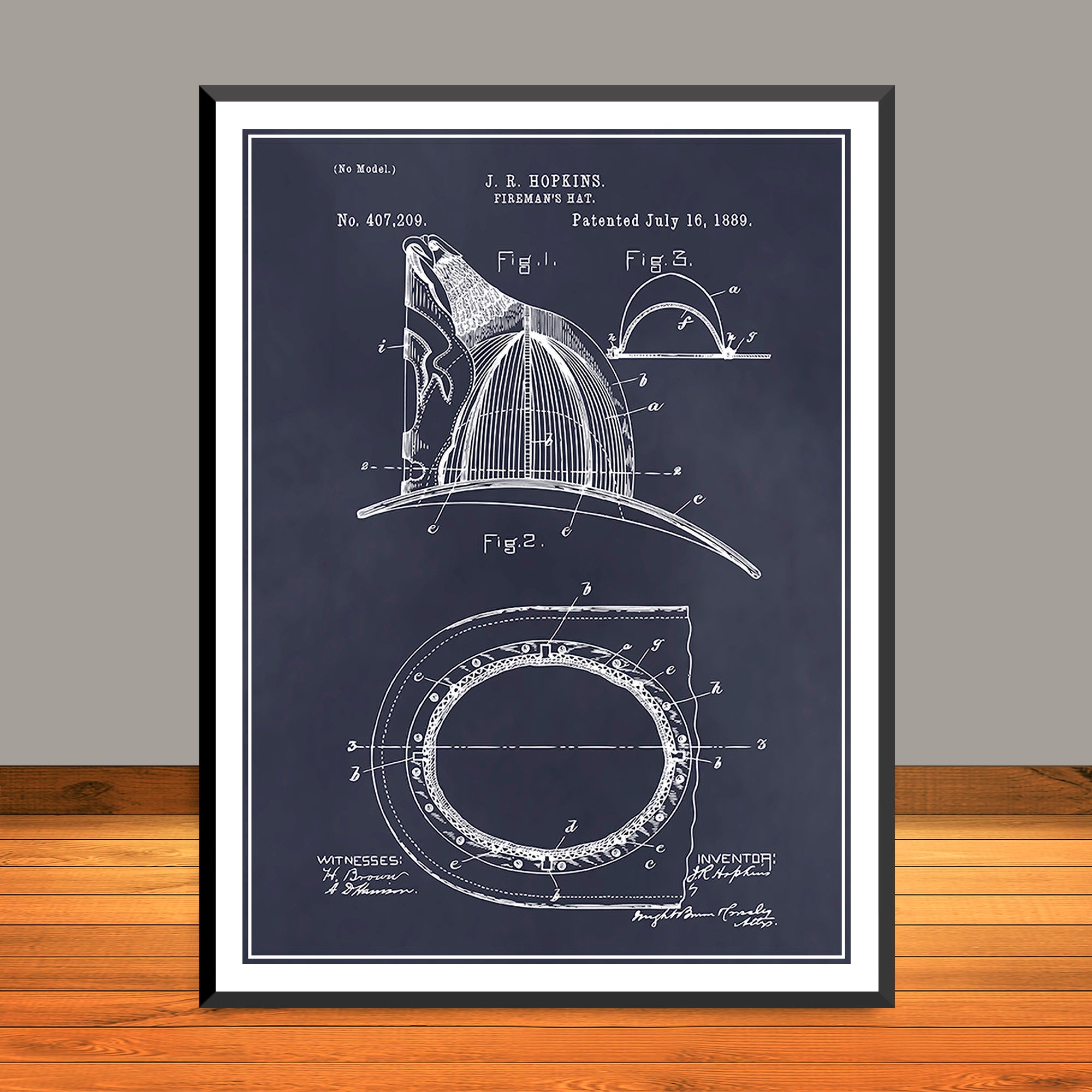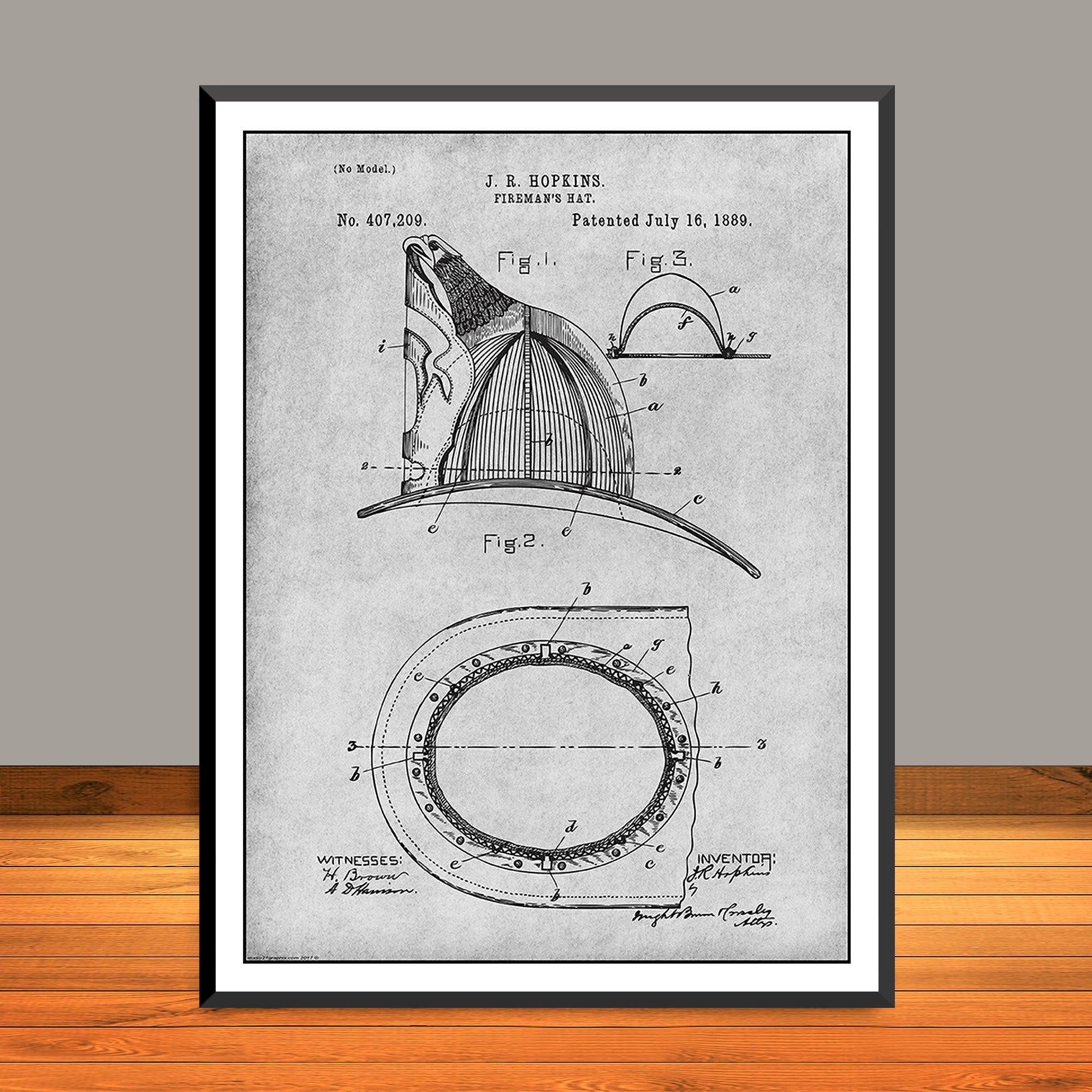 1889 Hopkins Fireman's Hat Patent Print