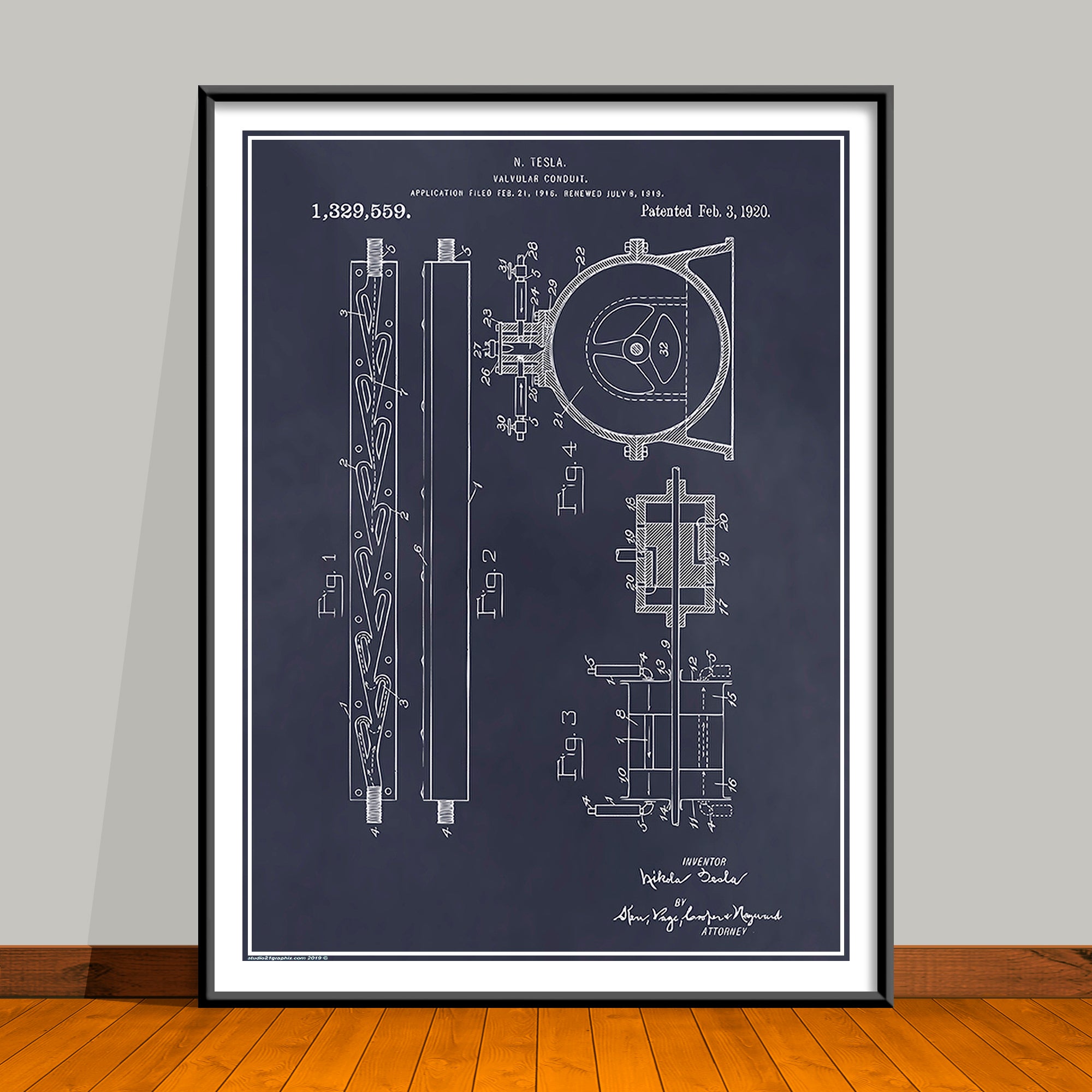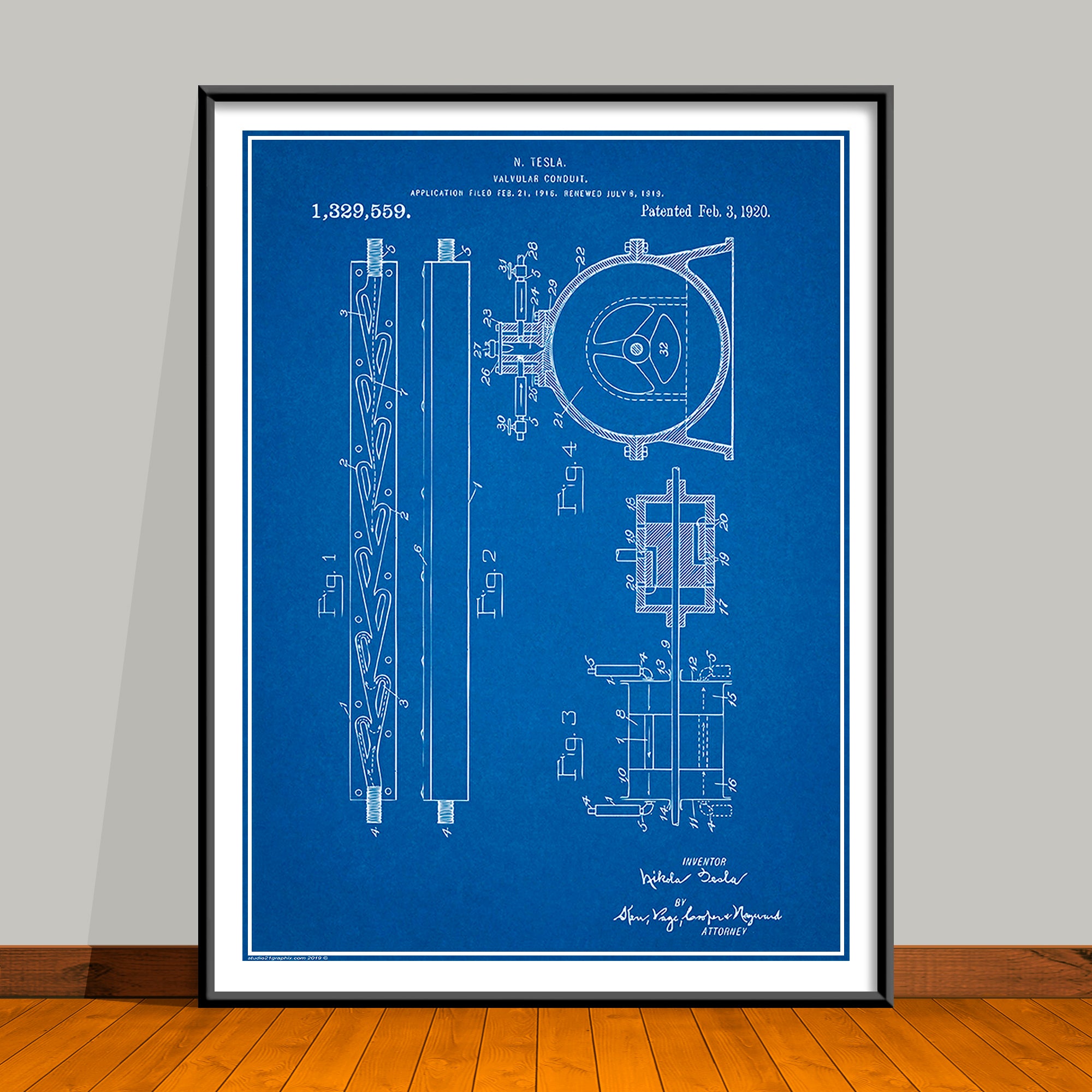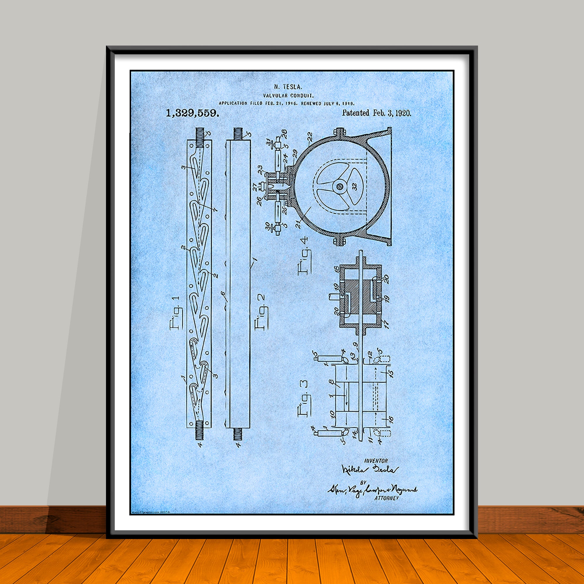 1919 Tesla Valvular Conduit Patent Print