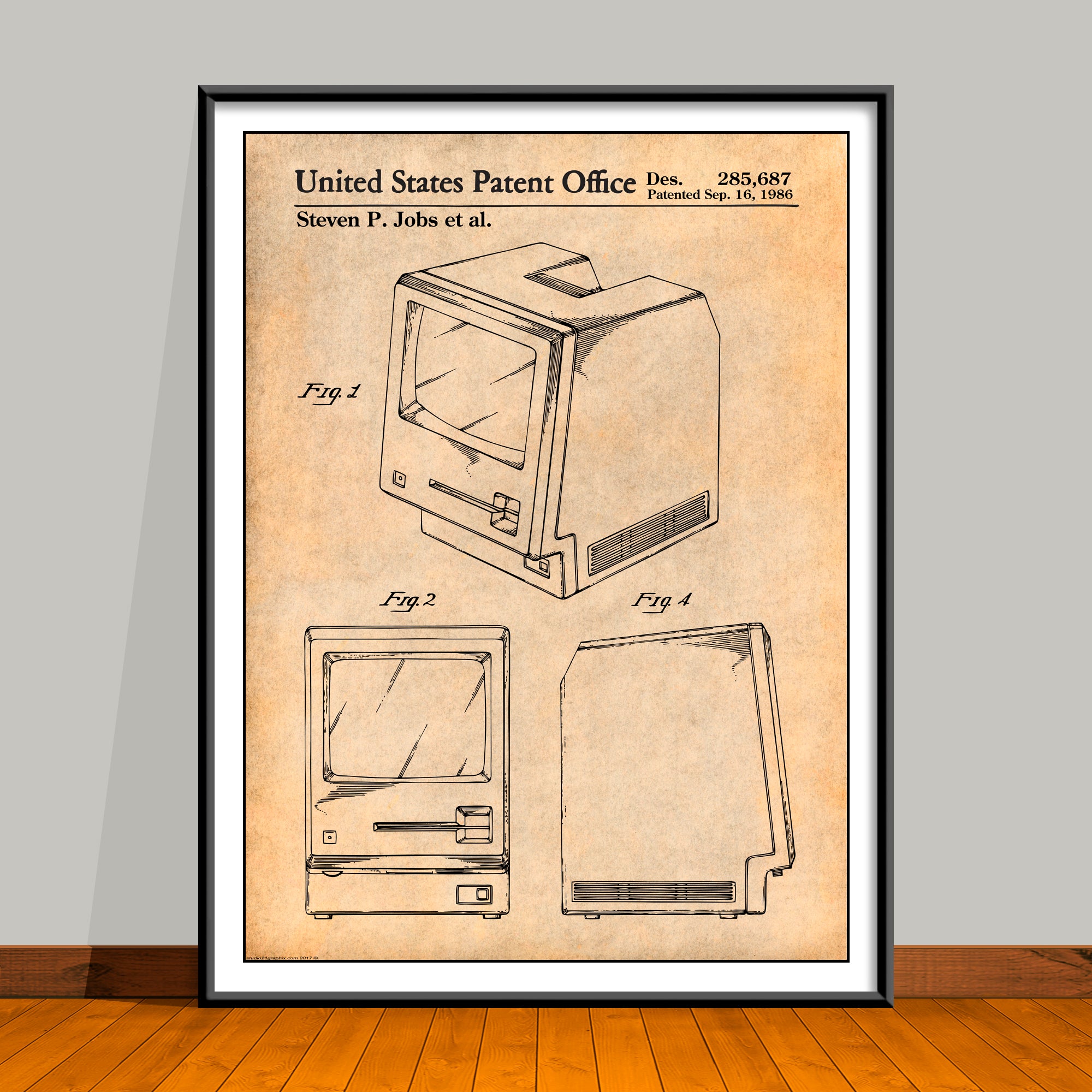 1986 Steve Jobs Original Apple Macintosh Computer Patent Print