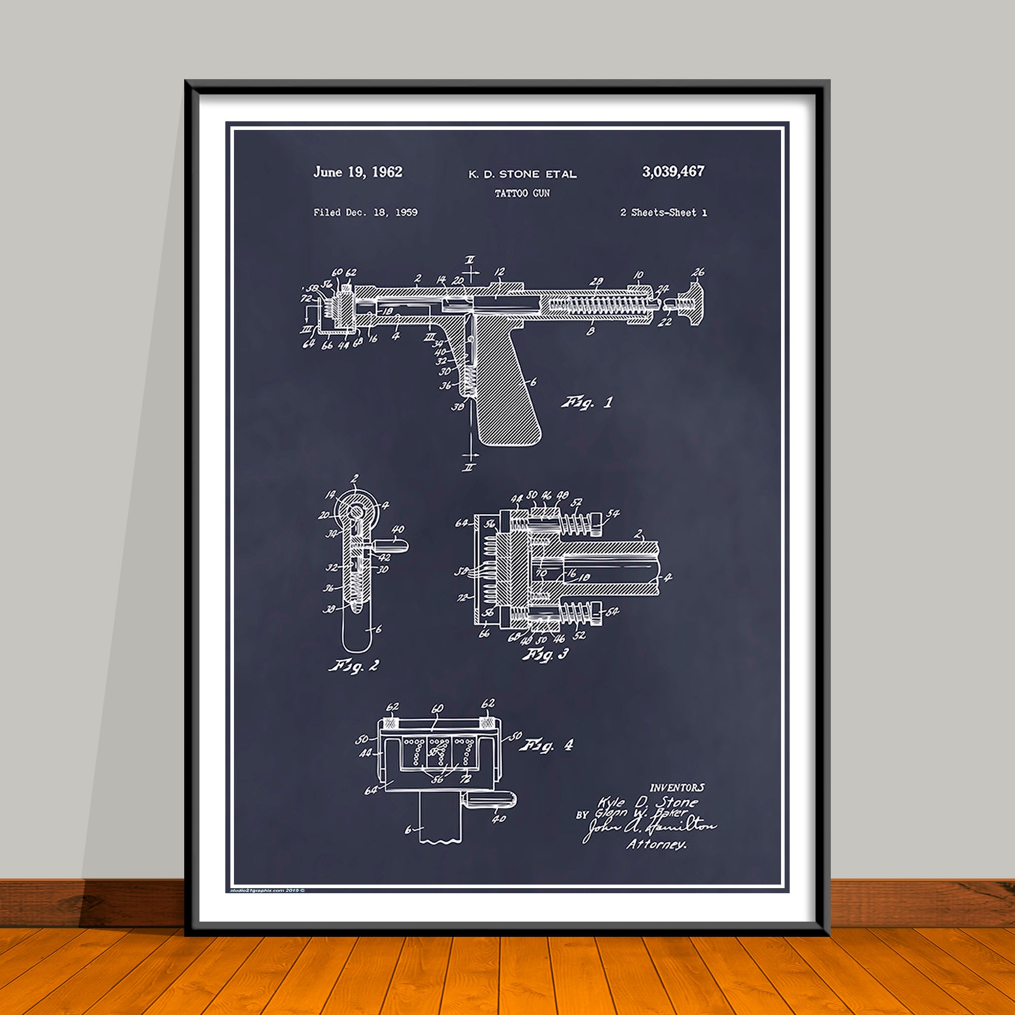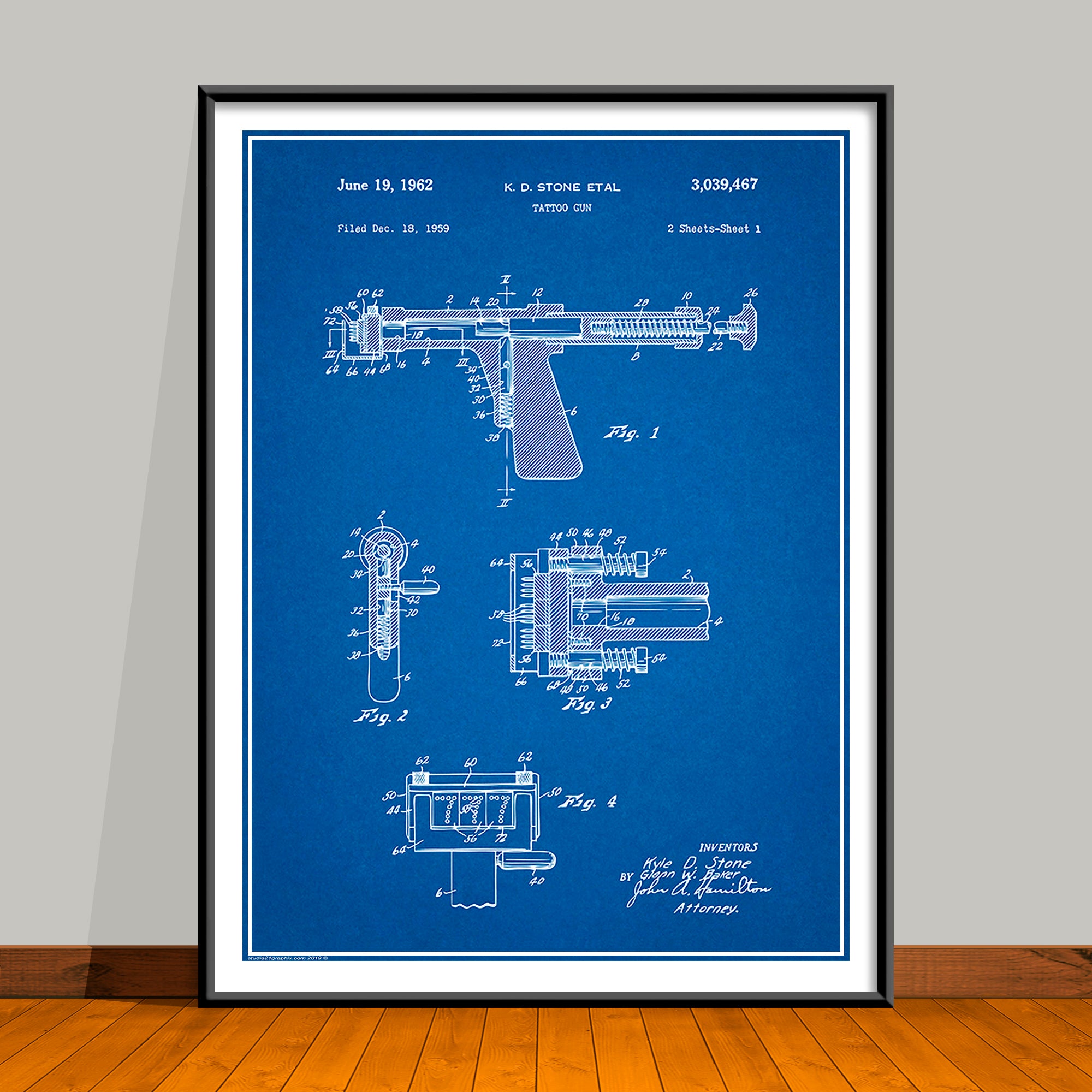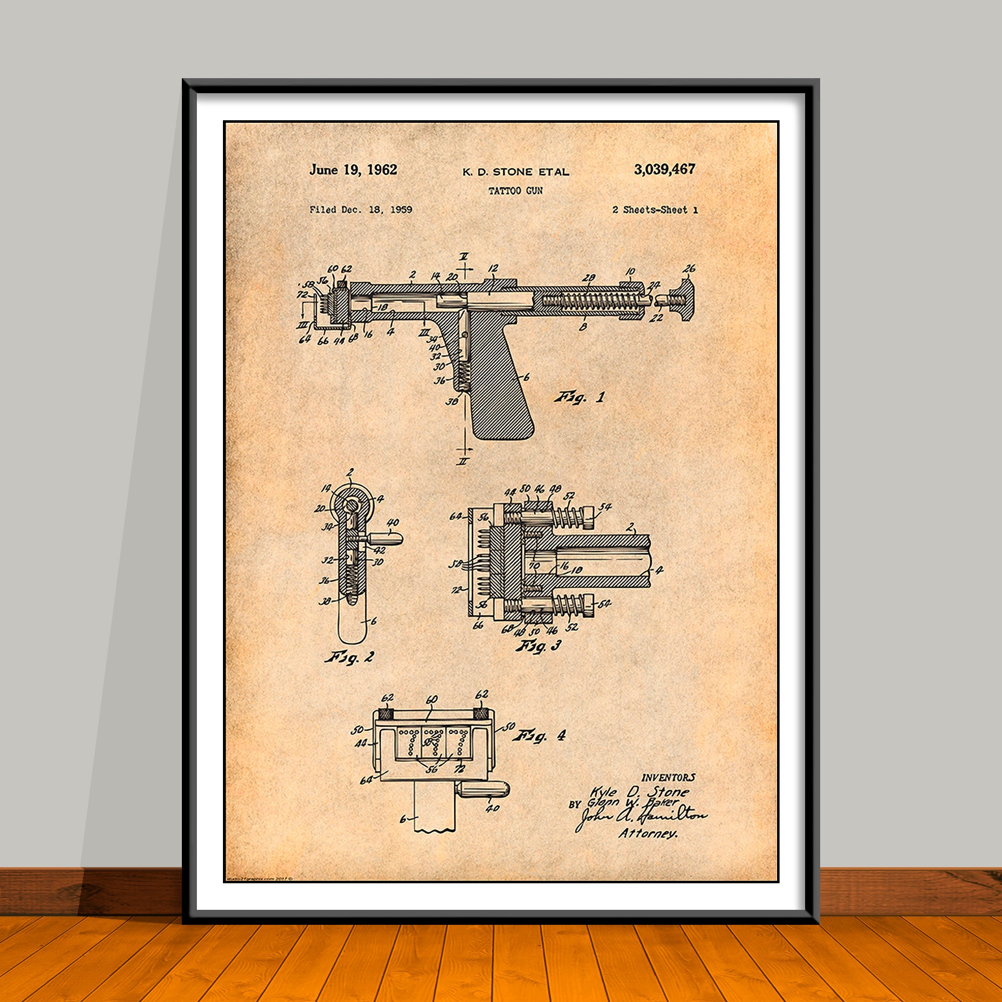 1959 Stone Tattoo Gun Patent Print