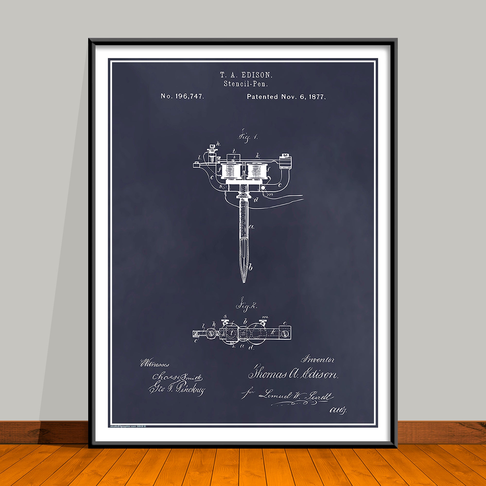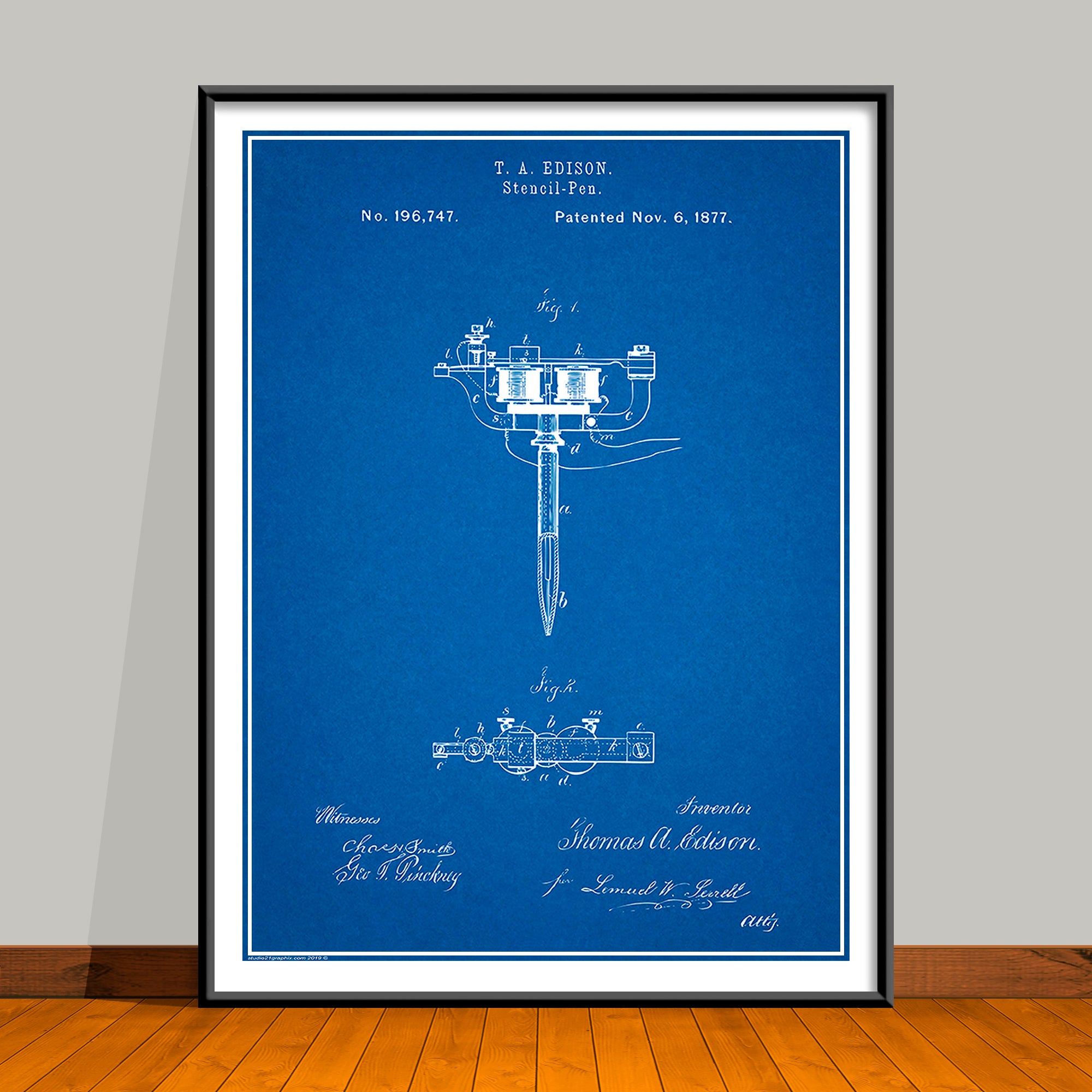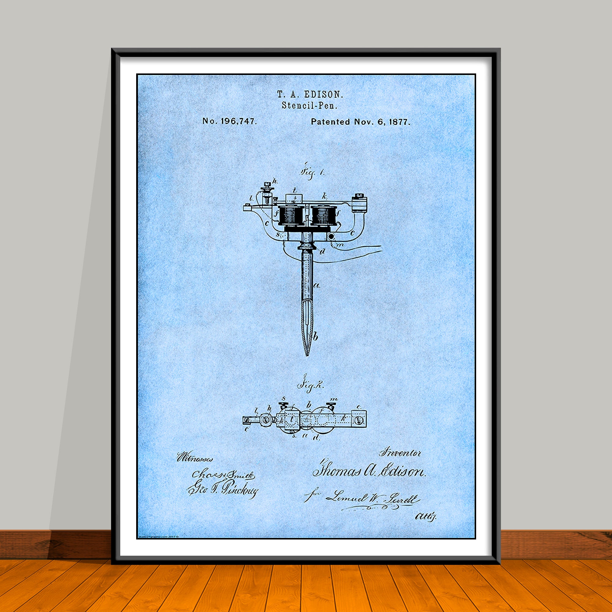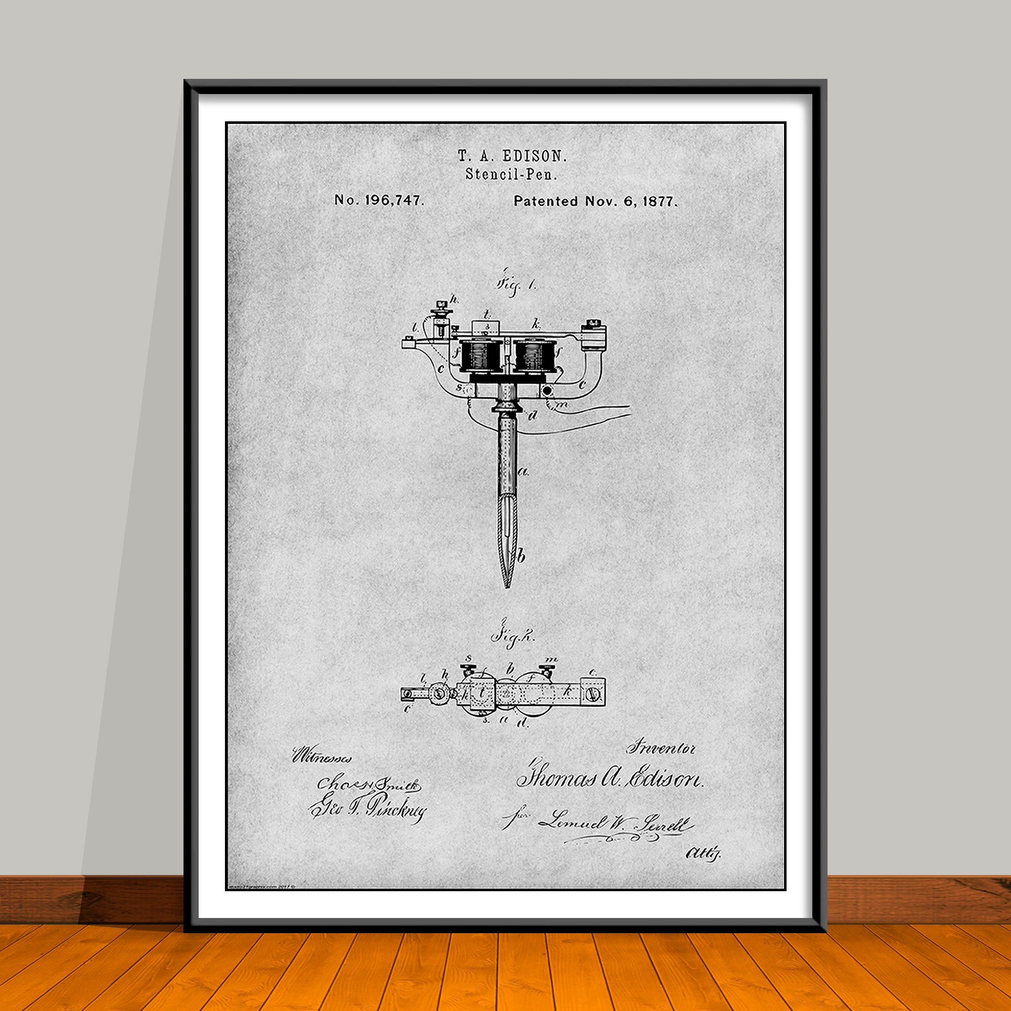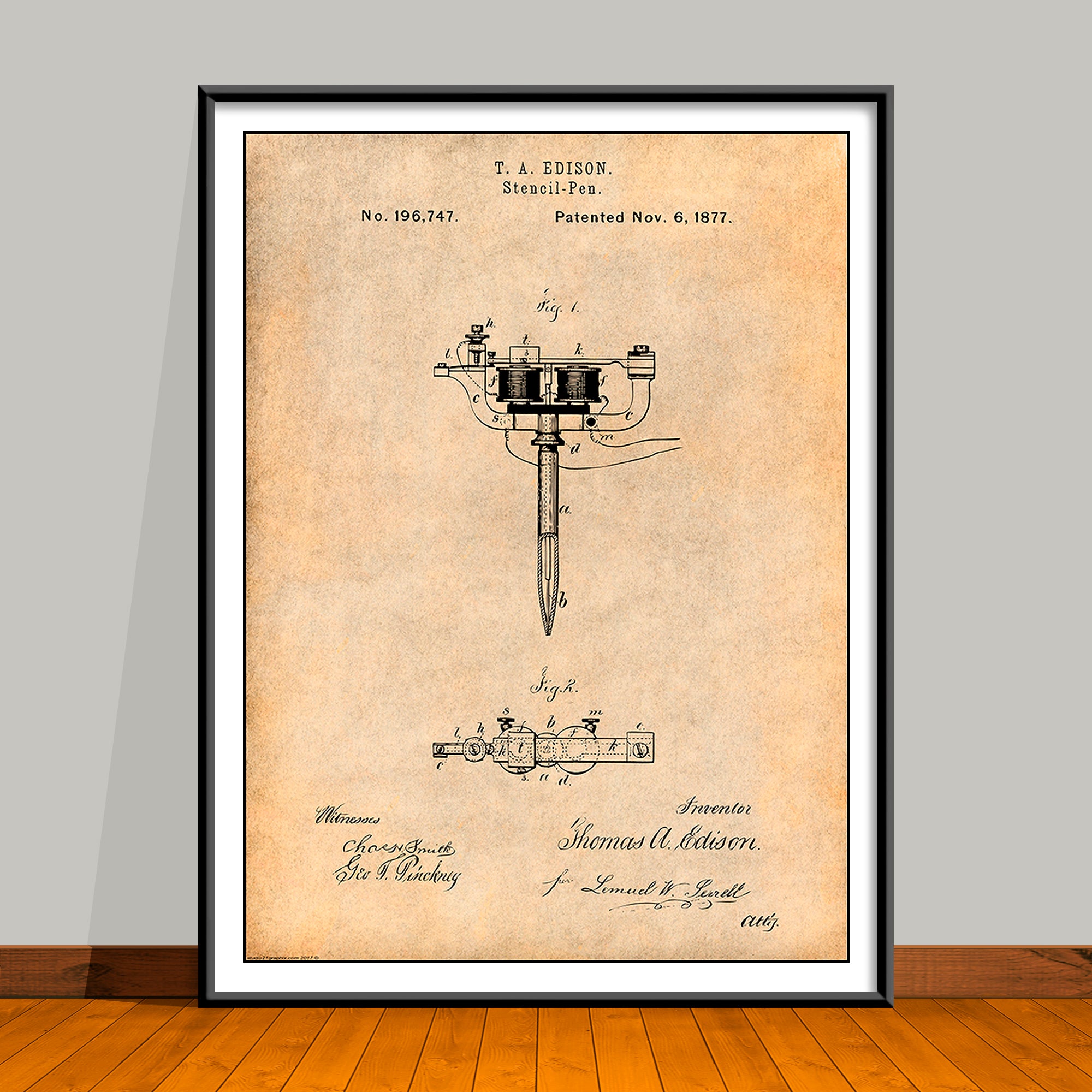 1877 Stencil Pen Tattooing Machine by Thomas Edison Patent Print
