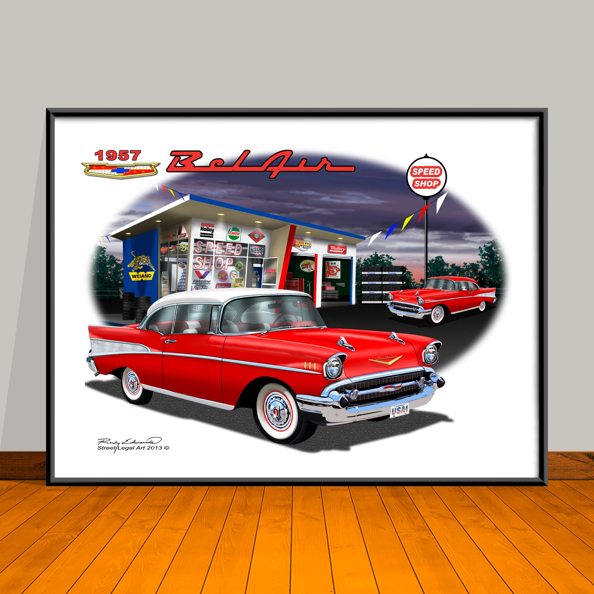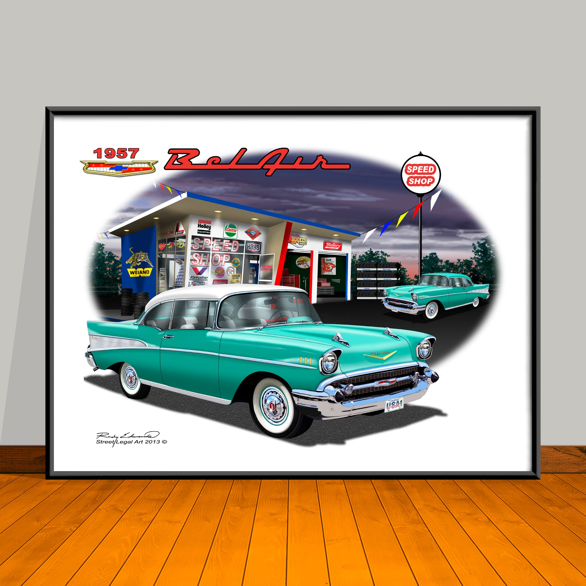 1957 Limited Edition Chevrolet Bel Air Two-tone Storm Scene Classic Car Art Print - 18" X 24" UNFRAMED