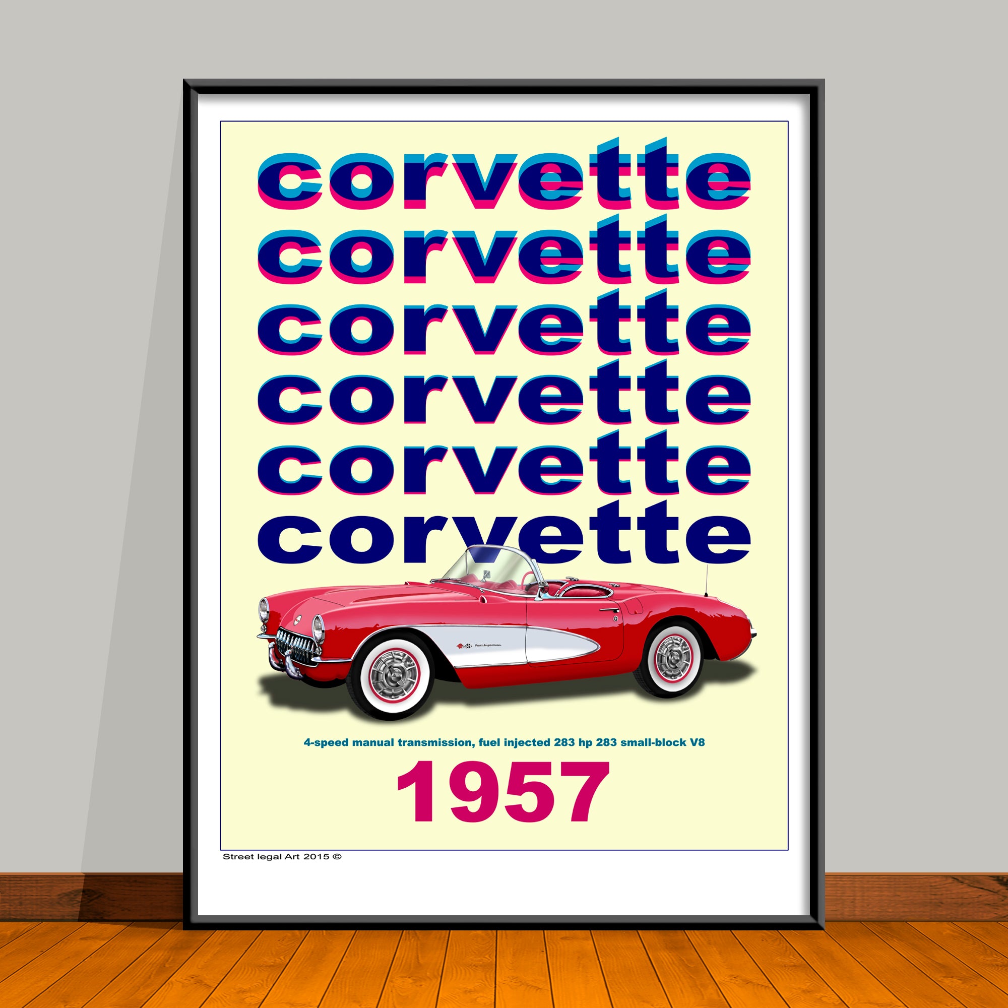 1957 Corvette Art Print - 18" X 24" UNFRAMED