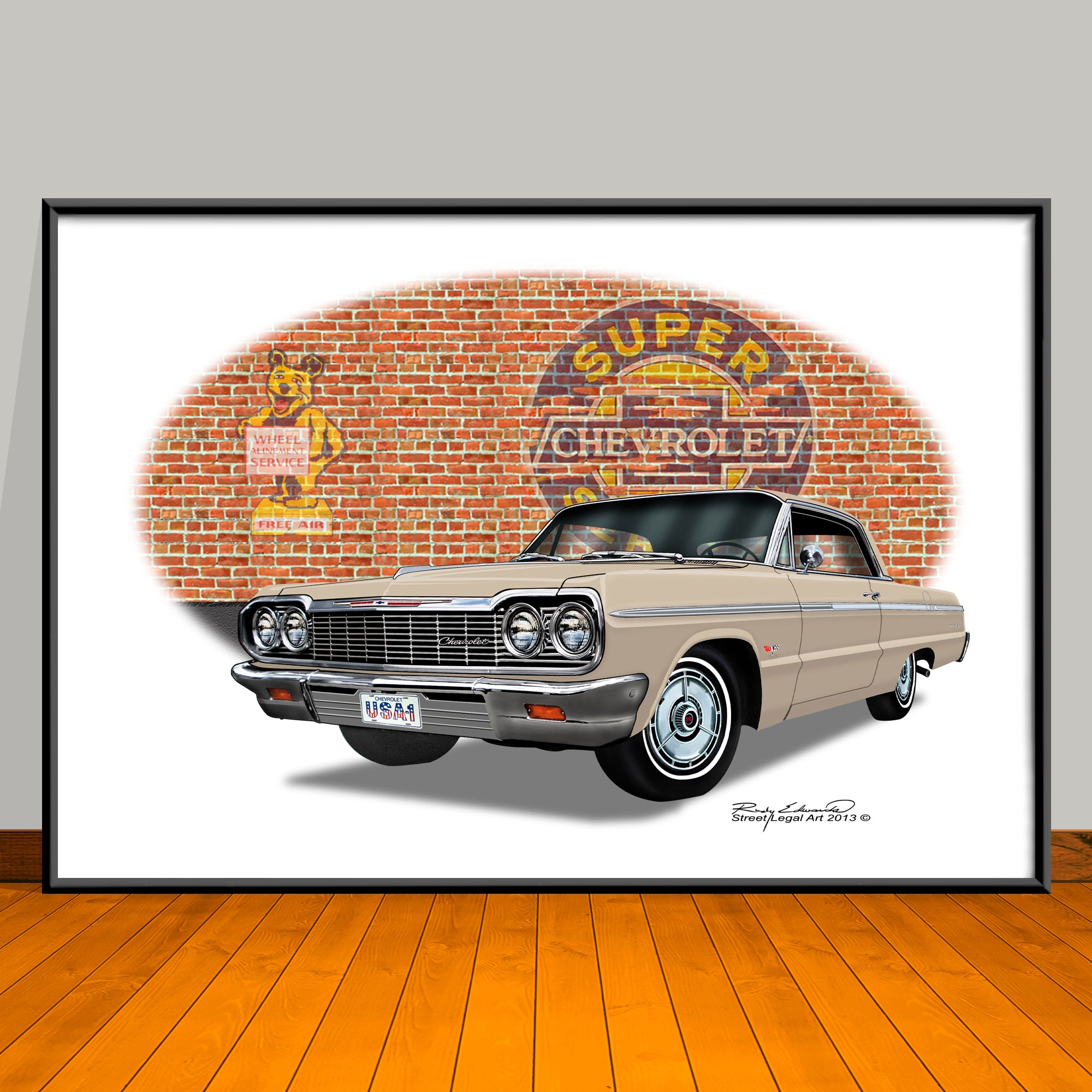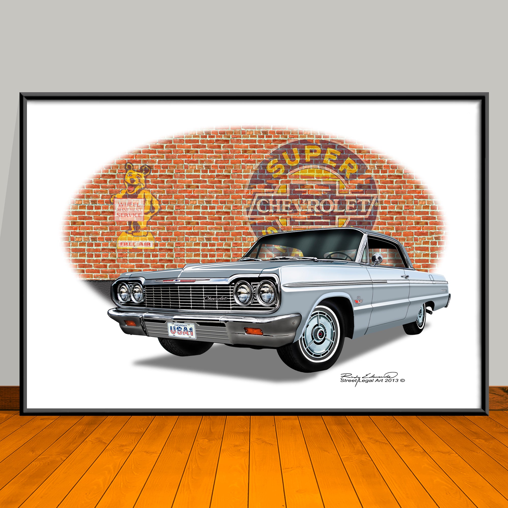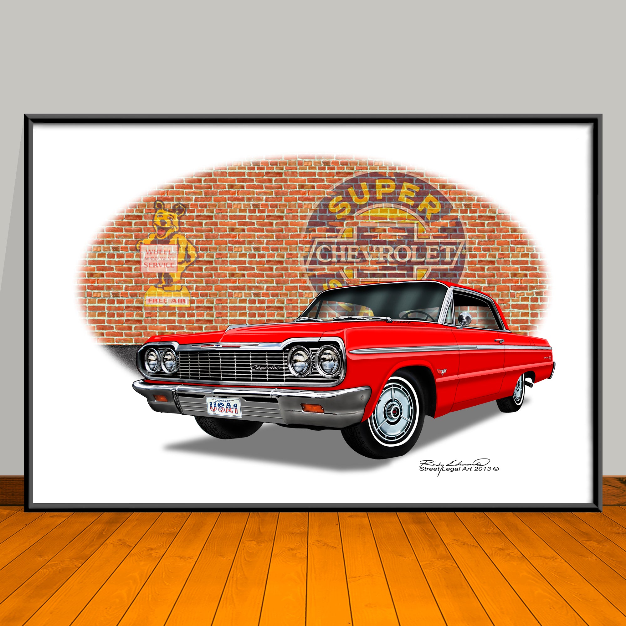1964 Chevrolet Impala Brick Wall Car Art Print - 13" X 19" UNFRAMED