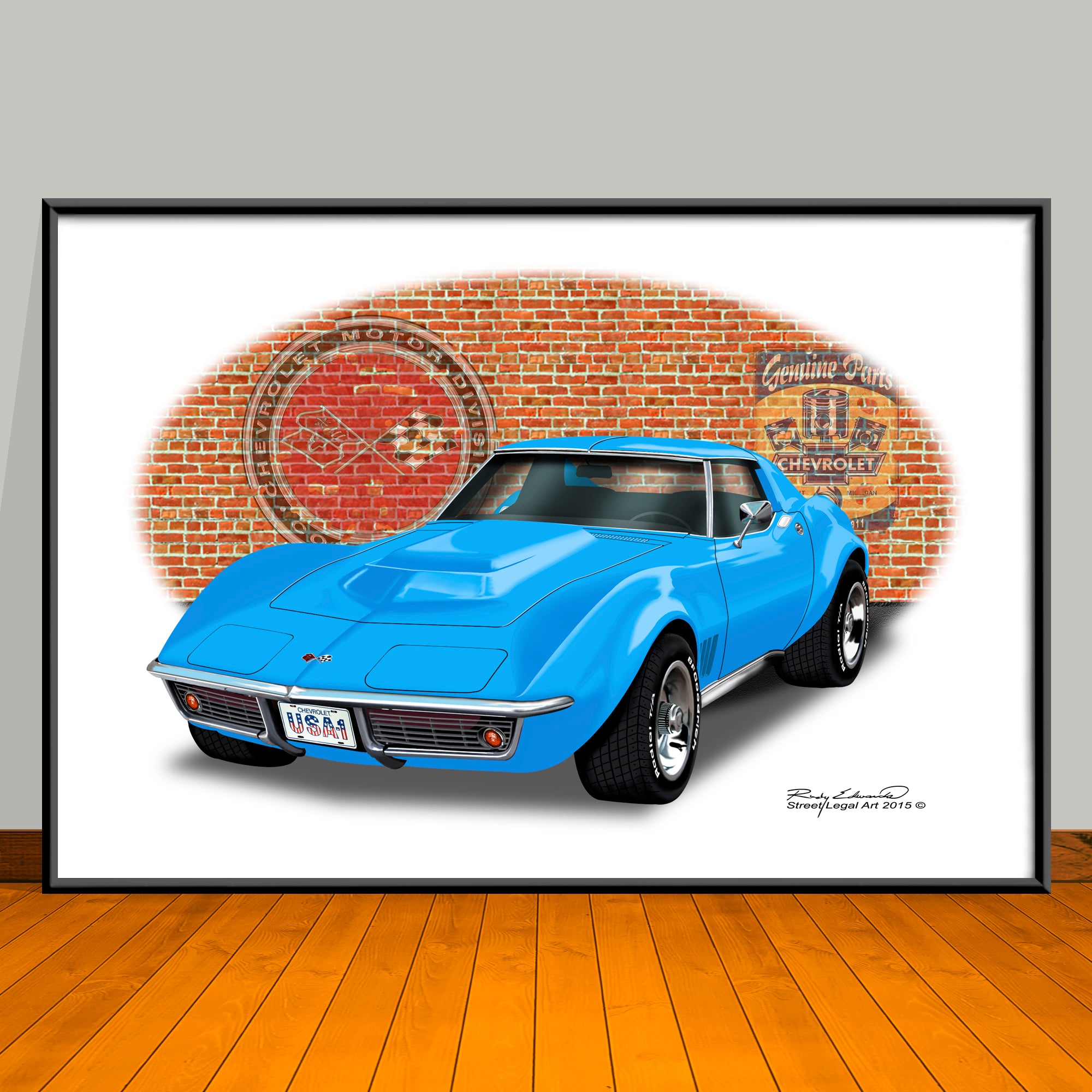 1968 Chevrolet Corvette Car Art Print - 13" X 19" UNFRAMED