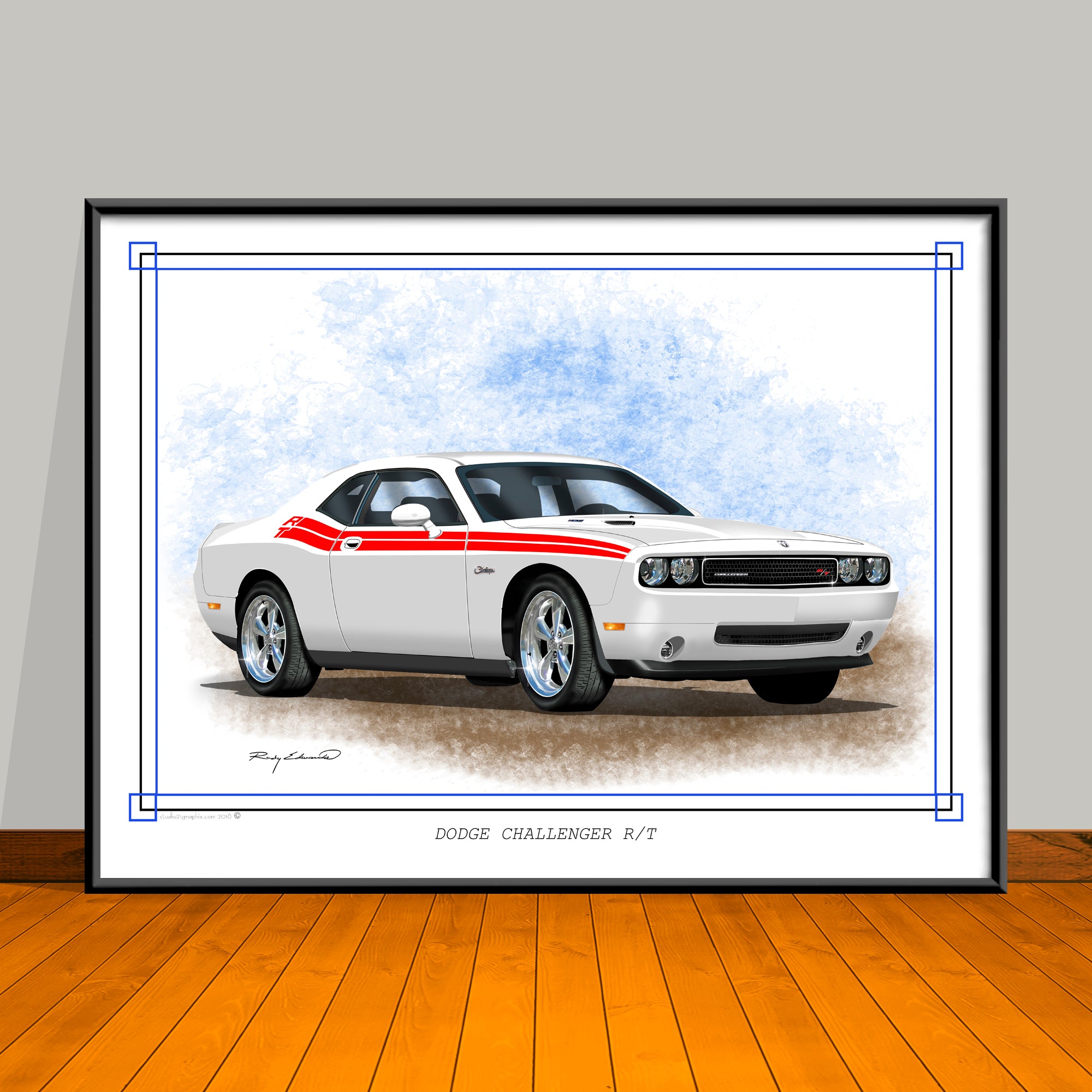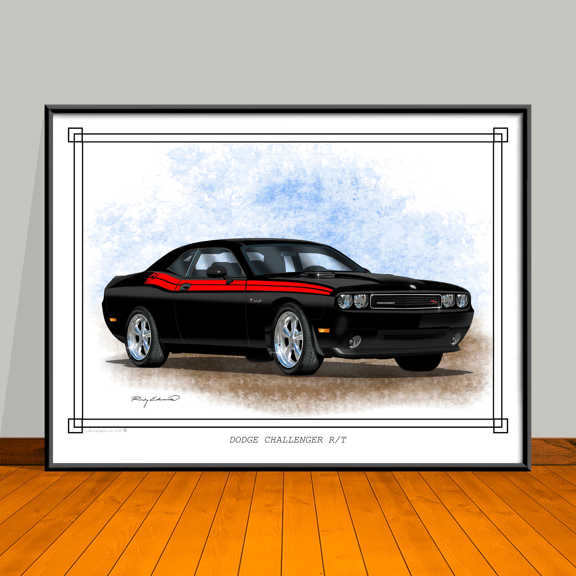 2008 2023 Dodge Challenger R/T Stripe Options Art Print - 18" X 24" UNFRAMED