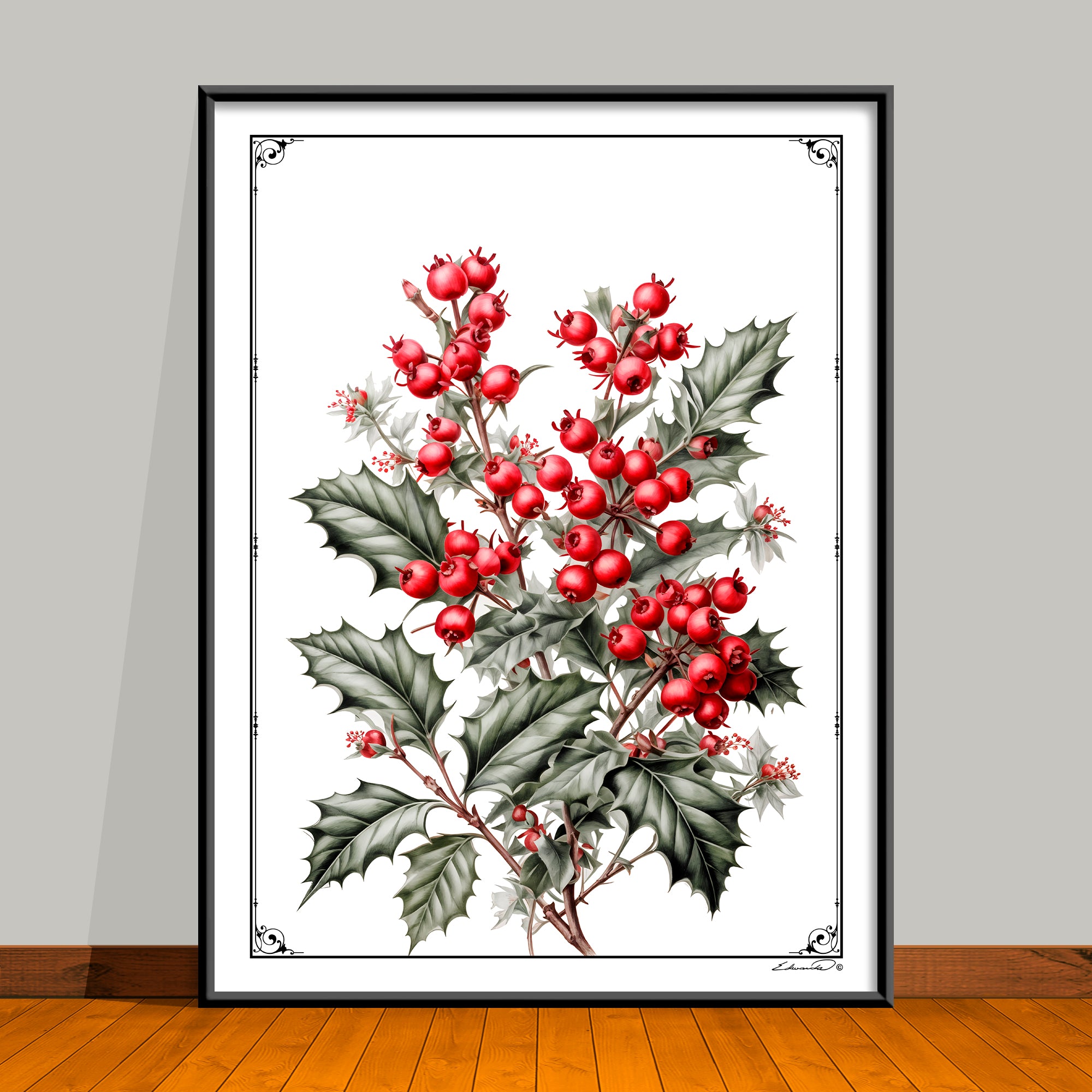 December Birth Flower Art Prints: Featuring the Holly Berry & Narcissus